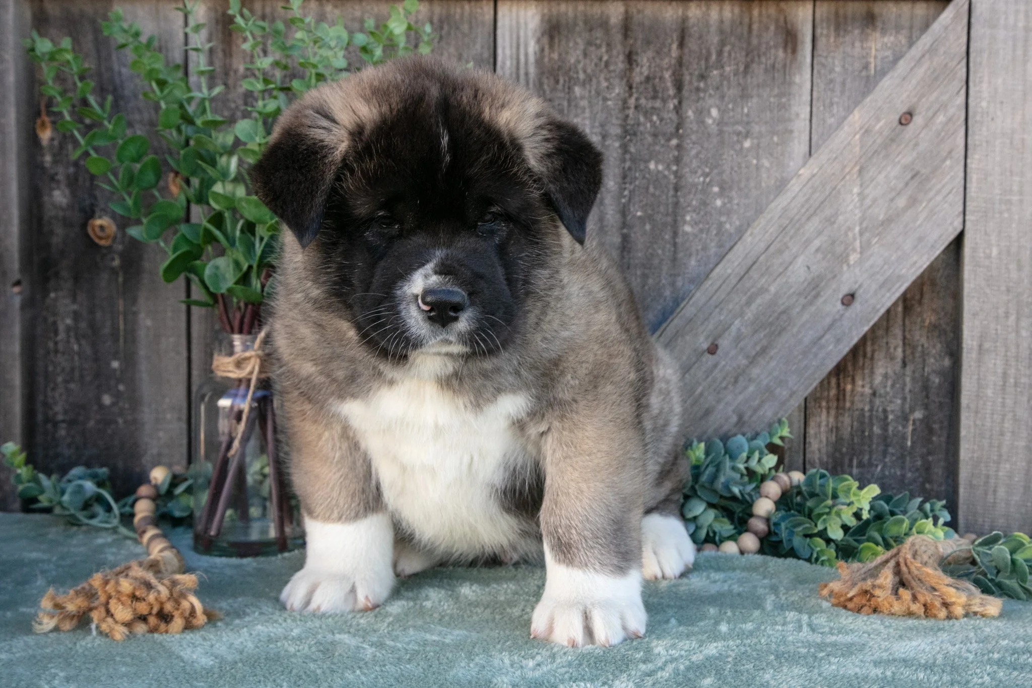 Here comes Sarge! This darling Akita puppy loves to romp and play. He’s ready to lather you with puppy kisses and would love nothing more than to be your new best friend. These puppies will be vet checked, up to date on shots and wormer, microchipped, and registered to the AKC! To learn more about these gorgeous puppies and welcome one into your home, please contact us today!