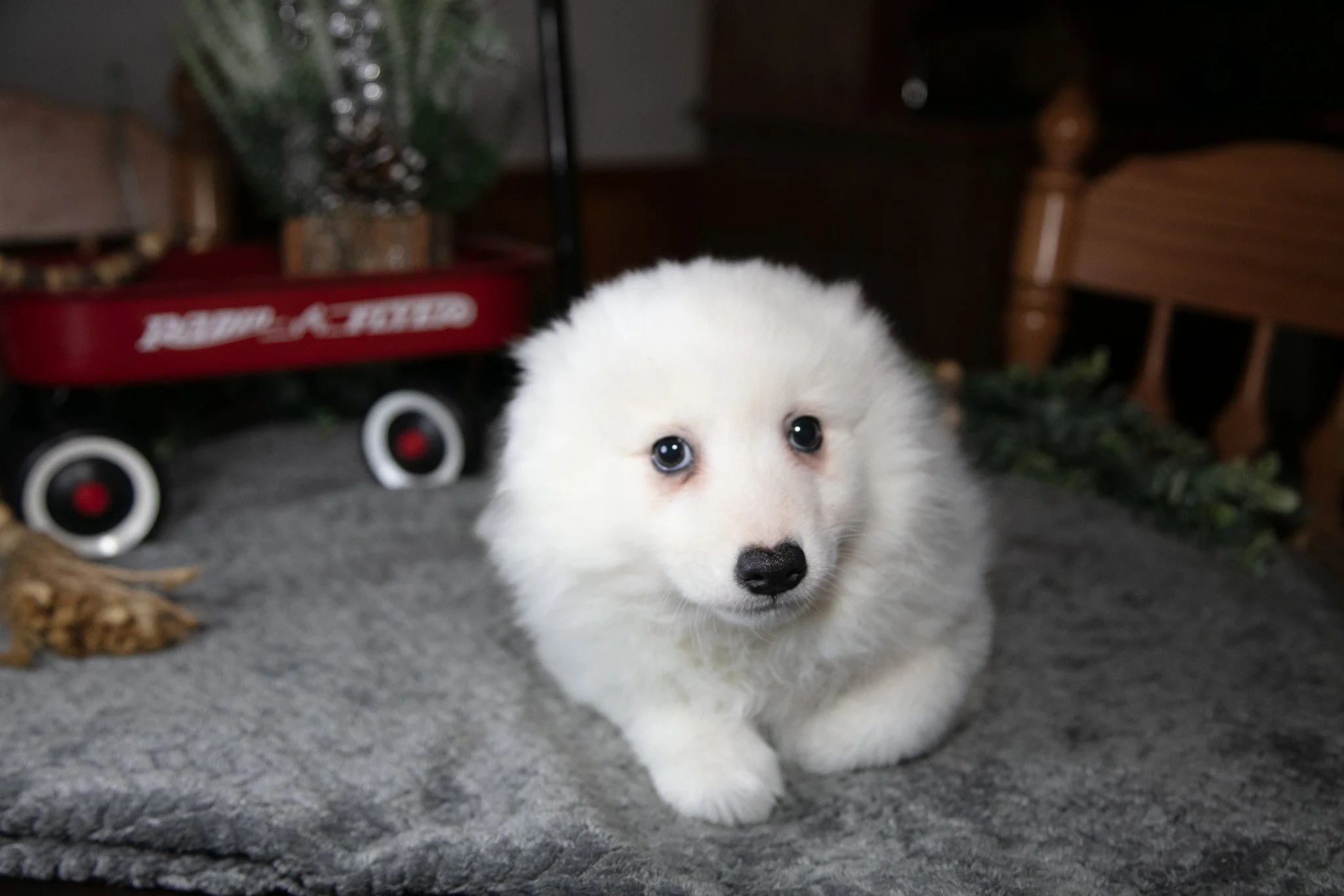 Here comes Ivory! This charming American Eskimo puppy is one of a kind and is ready to spoil you with love and attention. These puppies are family raised and love to be at your side. They are up to date on shots and wormer. To welcome one of these perfect pups into your home please contact us today!