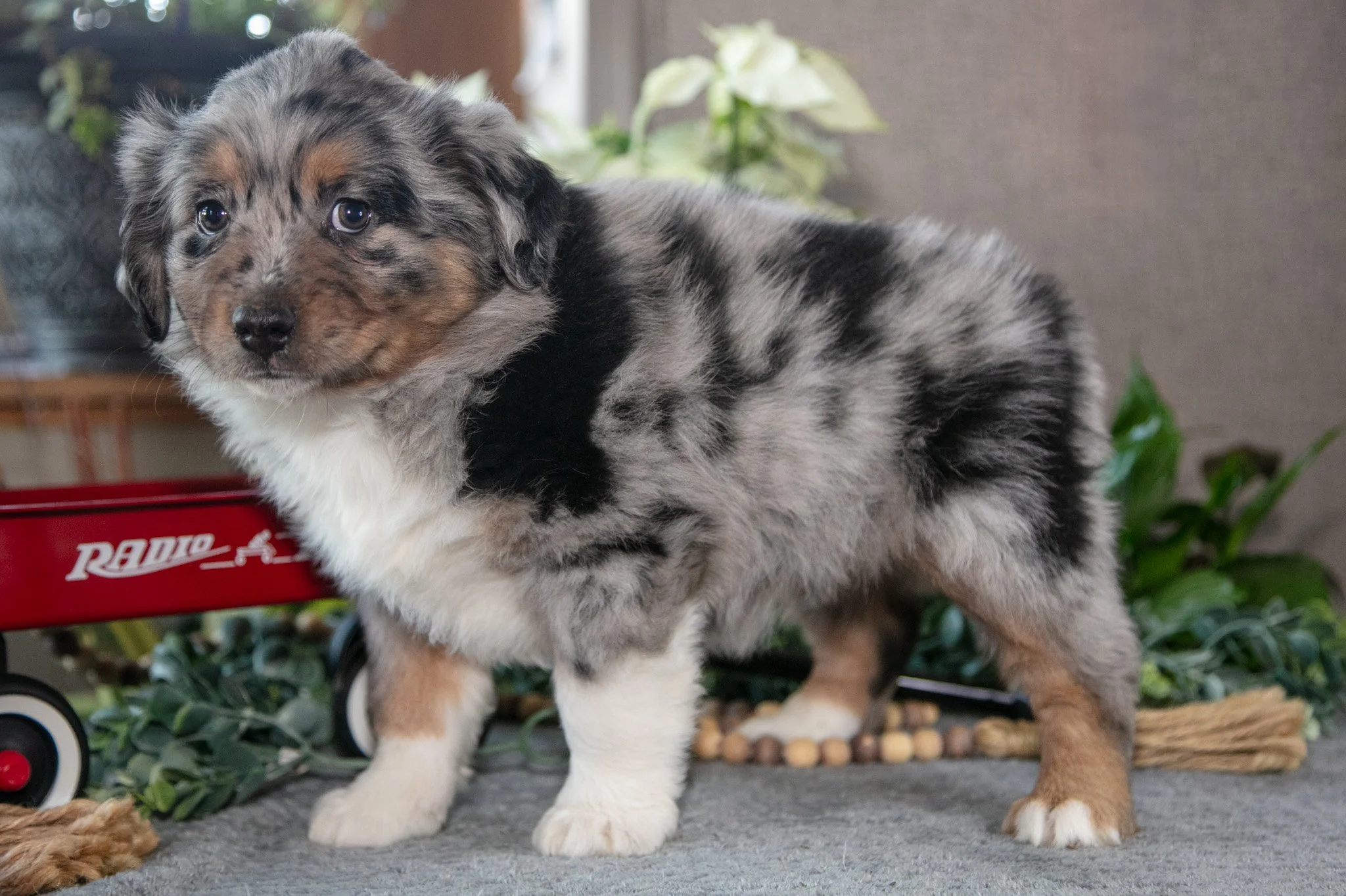 Everyone meet Dallas! This gorgeous Miniature Australian Shepherd puppy loves to play and would love to snuggle up with you! He is family raised and loves attention. He is vet checked, up to date on shots and wormer plus comes with a six month genetic health guarantee provided by the breeder! To learn more about this stunning puppy, please contact us!