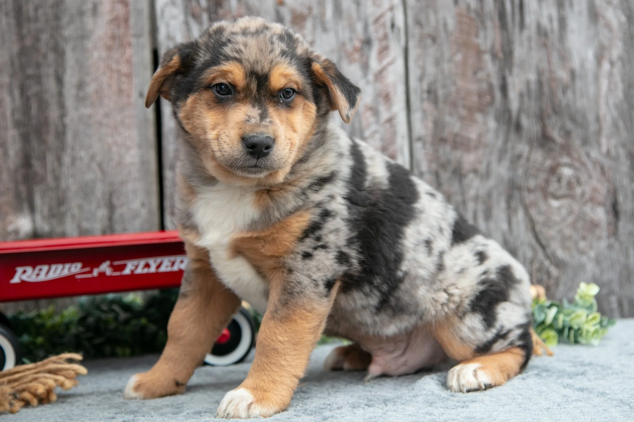 Everyone meet Poko! This adorable Australian Shepherd/Border Collie/Blue Heeler Mix puppy is ready to spoil you with love and attention. He is family raised and loves to be the center of attention. He is up to date on shots and wormer and raised around children. To learn more about this perfect pooch, contact us today!