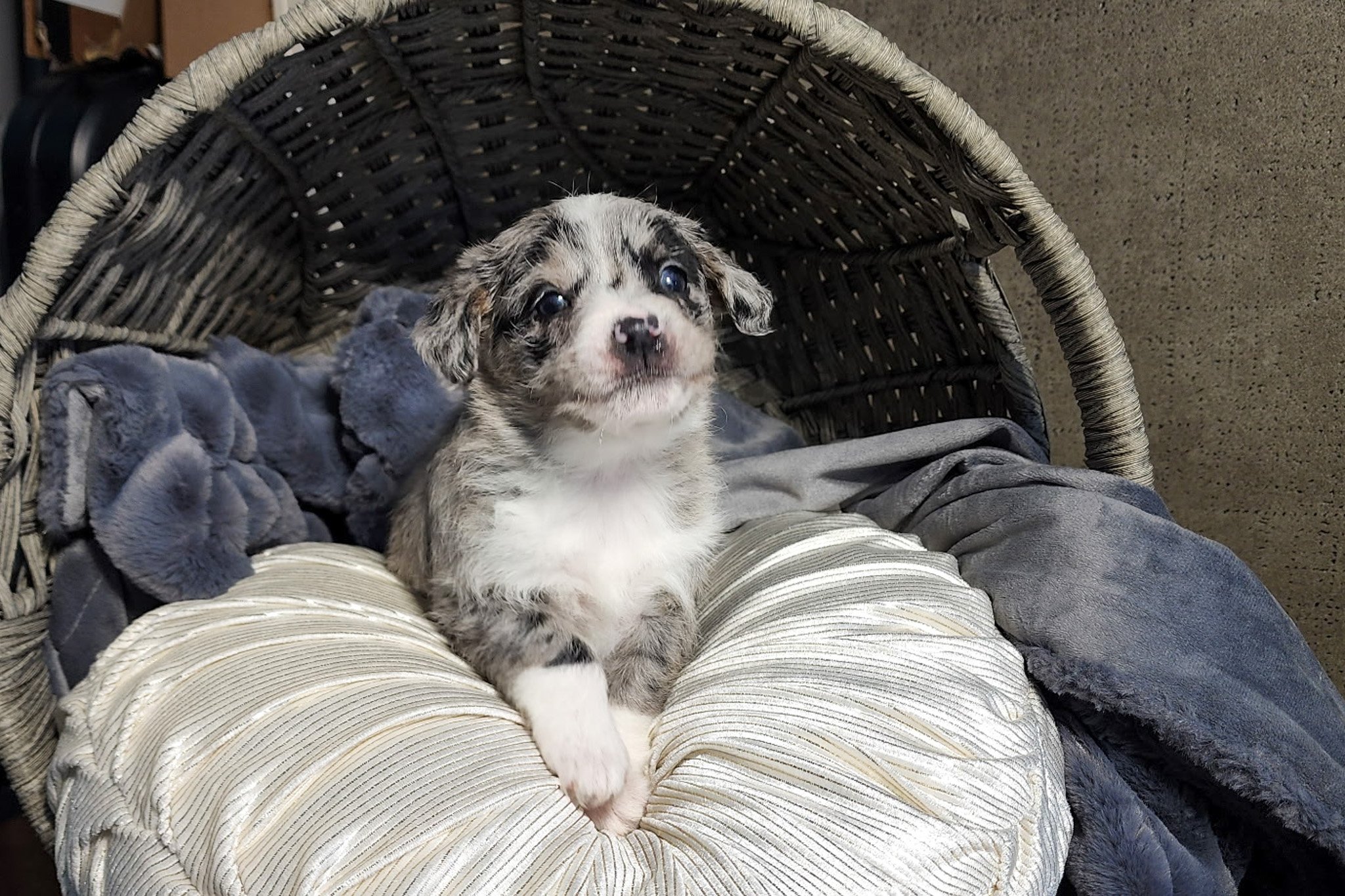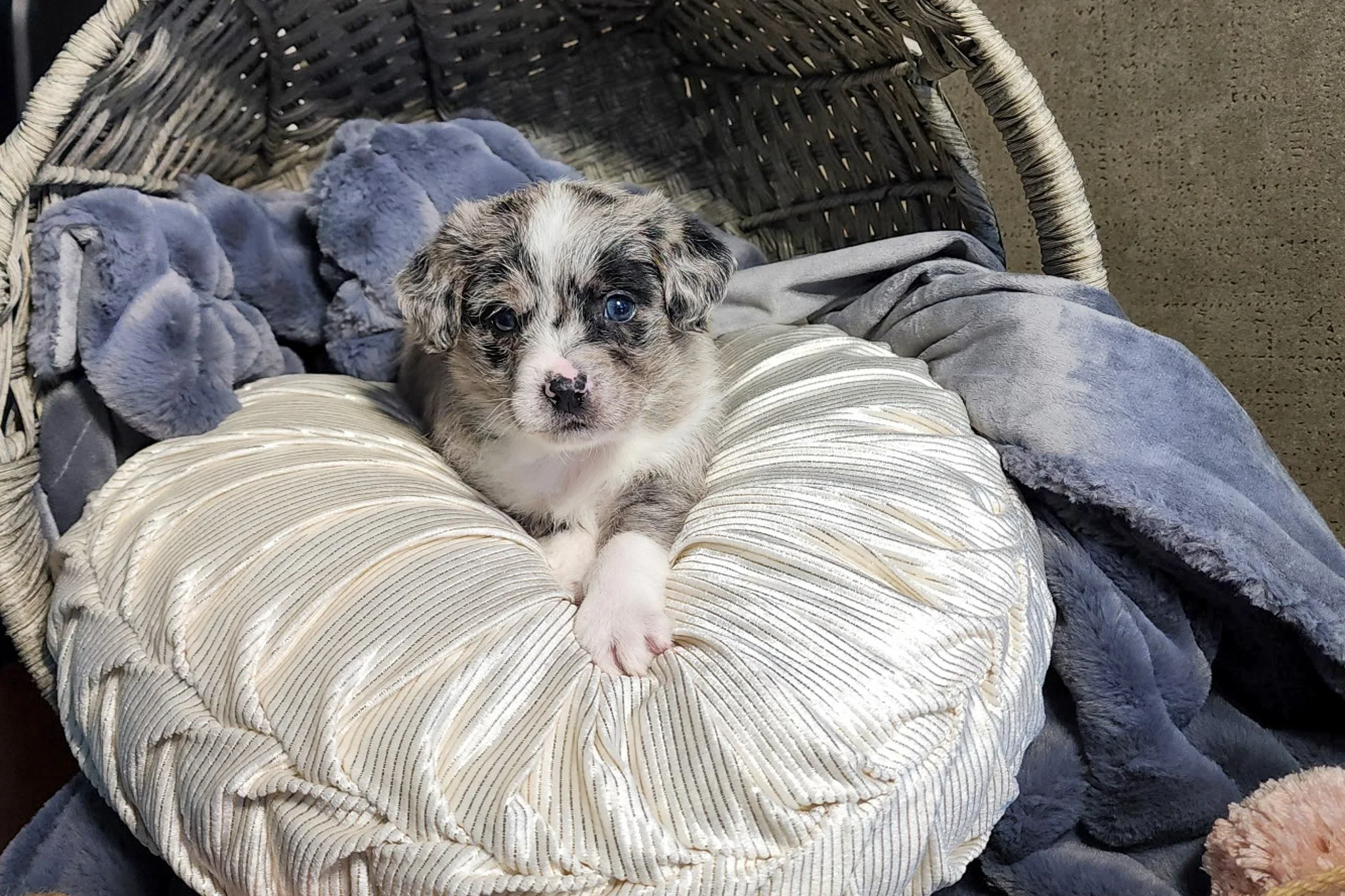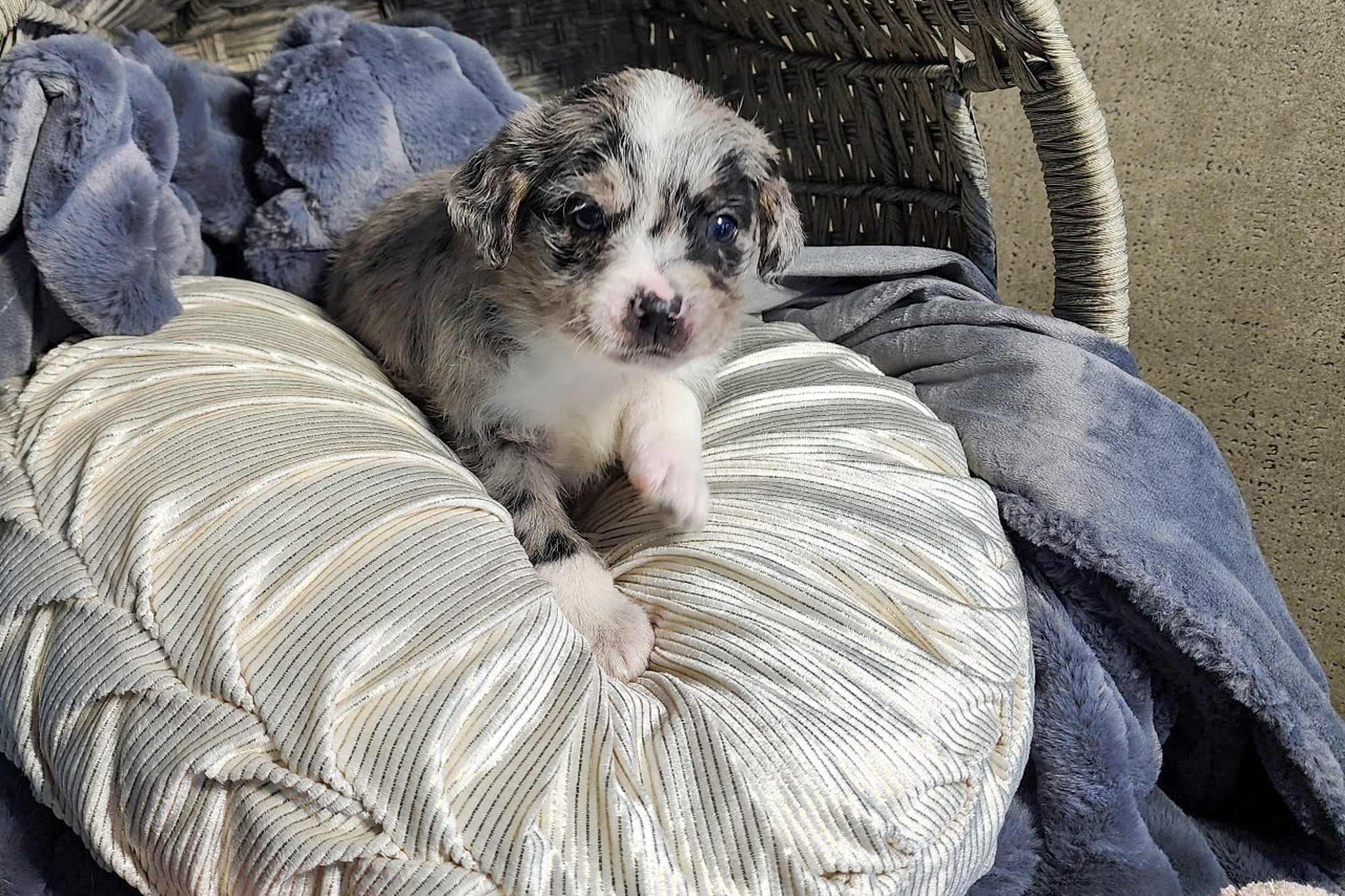Everyone meet Riven! This adorable Australian Shepherd/Mini Poodle Mix puppy is ready to spoil you with love and attention. He is family raised and loves to be the center of attention. He will be up to date on shots and wormer, vet checked and microchipped. To learn more about this perfect pooch, contact us today!