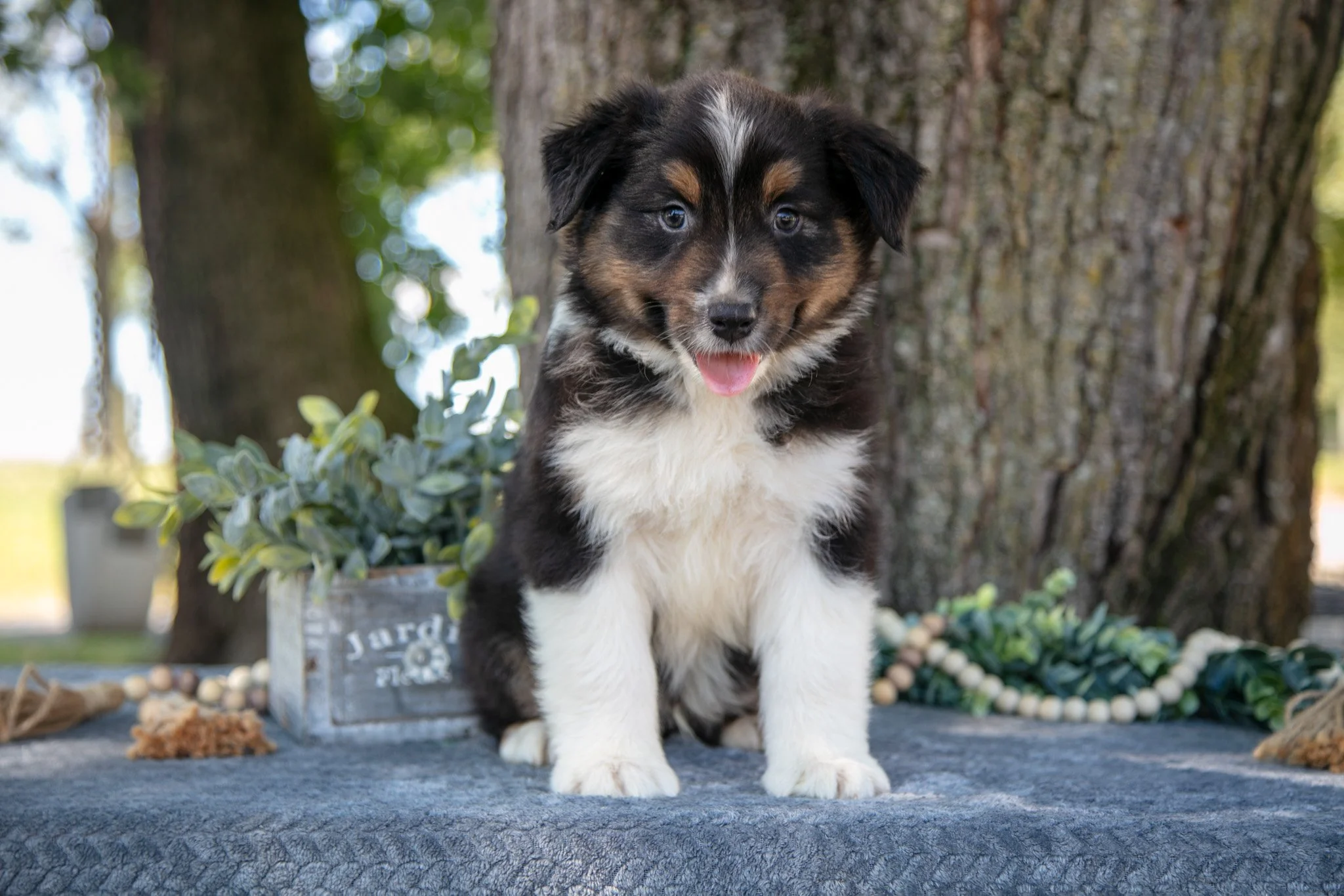 Here comes Patches! This stunning Australian Shepherd puppy is ready to cozy up with you as the weather gets cooler! He is family raised with kids and spoiled to the brim with love and attention. He will be vet checked, up to date on shots and wormer, and includes a 6 month genetic health guarantee provided by the breeder! To welcome this gorgeous puppy into your home, please contact us today!