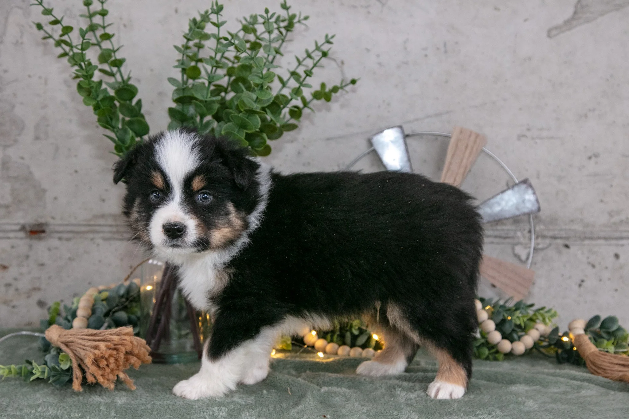 Here comes Spencer! This stunning Australian Shepherd puppy is ready to cozy up with you as the weather gets warmer! He is family raised with kids and spoiled to the brim with love and attention. He will be vet checked and up to date on shots and wormer. To welcome this gorgeous puppy into your home, please contact us today!