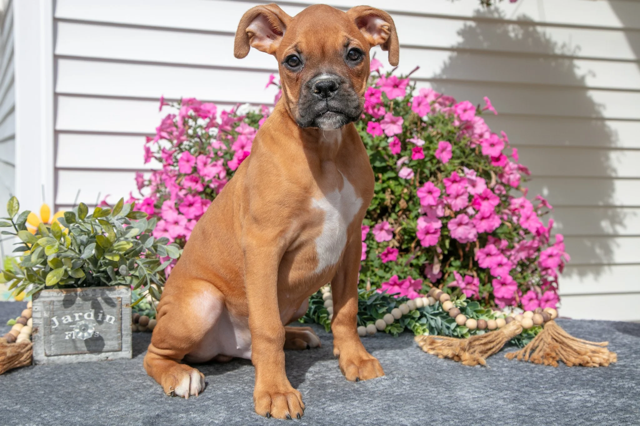 Here comes Radar! This adorable Boxer puppy is ready play the day away and go on lots of adventures with you. Radar is family raised and loves to snuggle. He would love to be your new best friend. He will be vet checked, up to date on shots and wormer and AKC registrable. He is European bred and has champion bloodlines. To welcome this puppy into your heart and home, please contact us today!