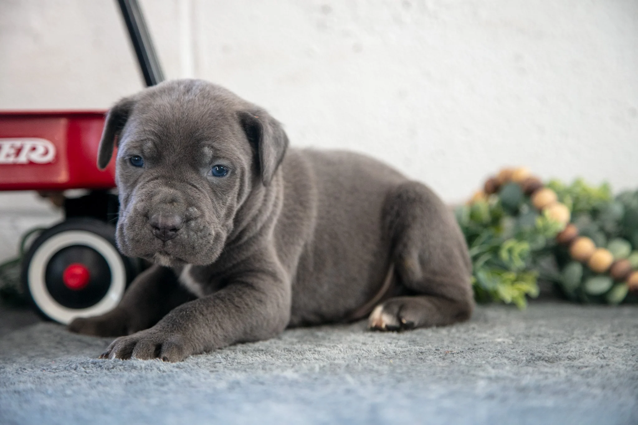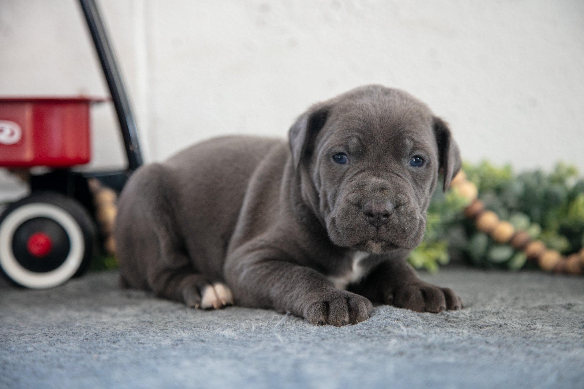 Here comes Sam! This darling Cane Corse puppy is one of a kind and can’t wait to spoil you with love and attention. He is family raised with kids and loves to be the center of attention. He is vet checked and up to date on shots and wormer. To learn more please contact us today.