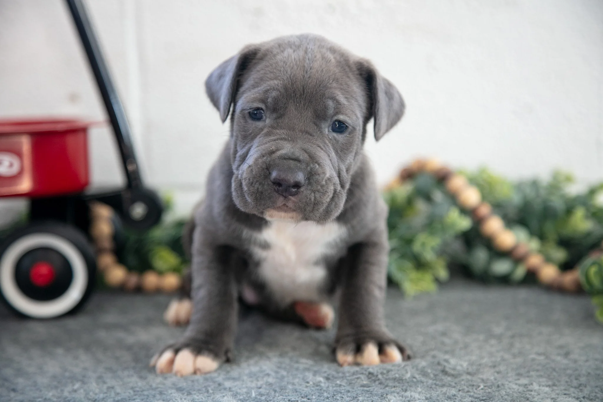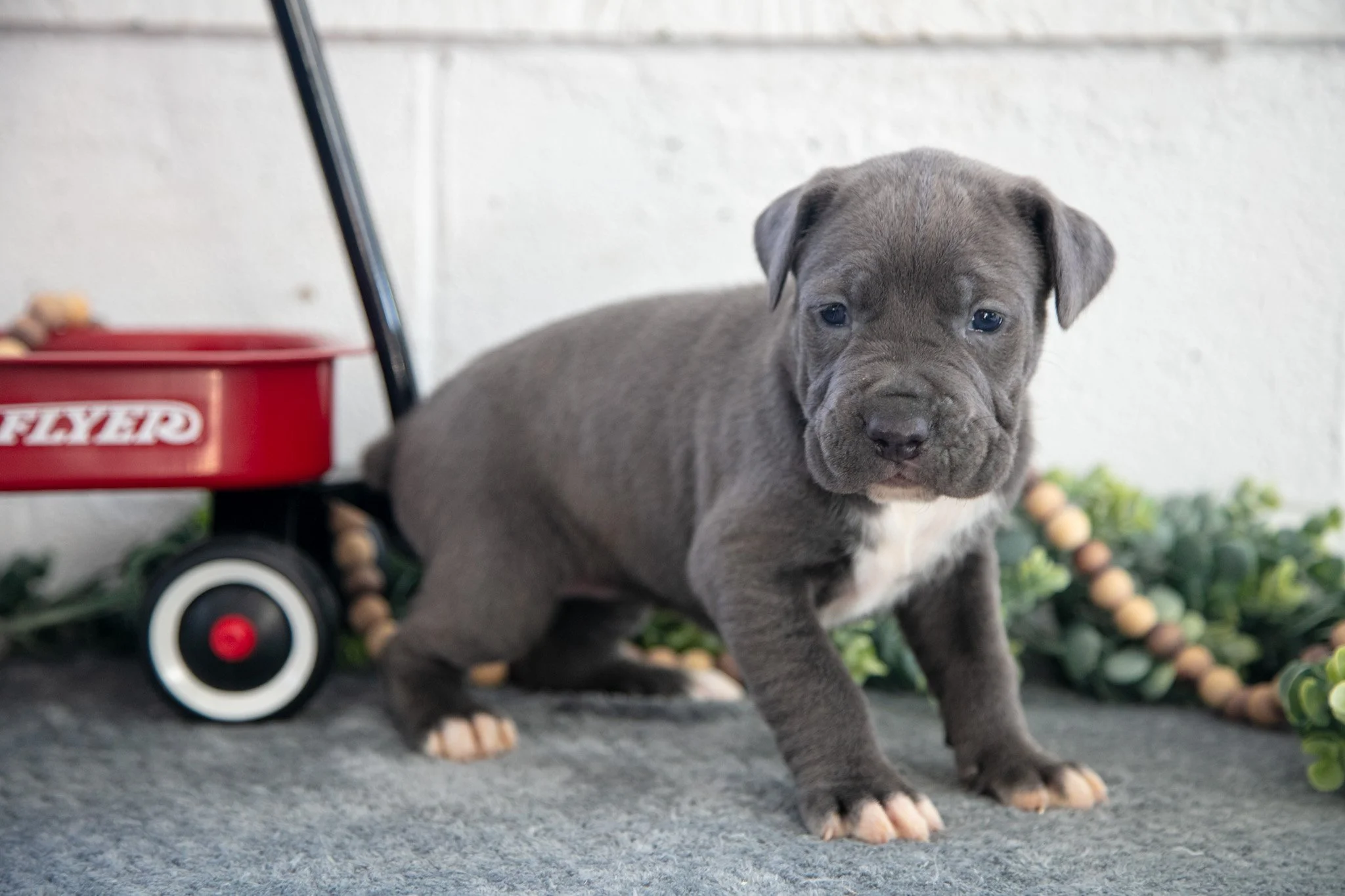 Here comes Stacy! This darling Cane Corse puppy is one of a kind and can’t wait to spoil you with love and attention. She is family raised with kids and loves to be the center of attention. She is vet checked and up to date on shots and wormer. To learn more please contact us today.