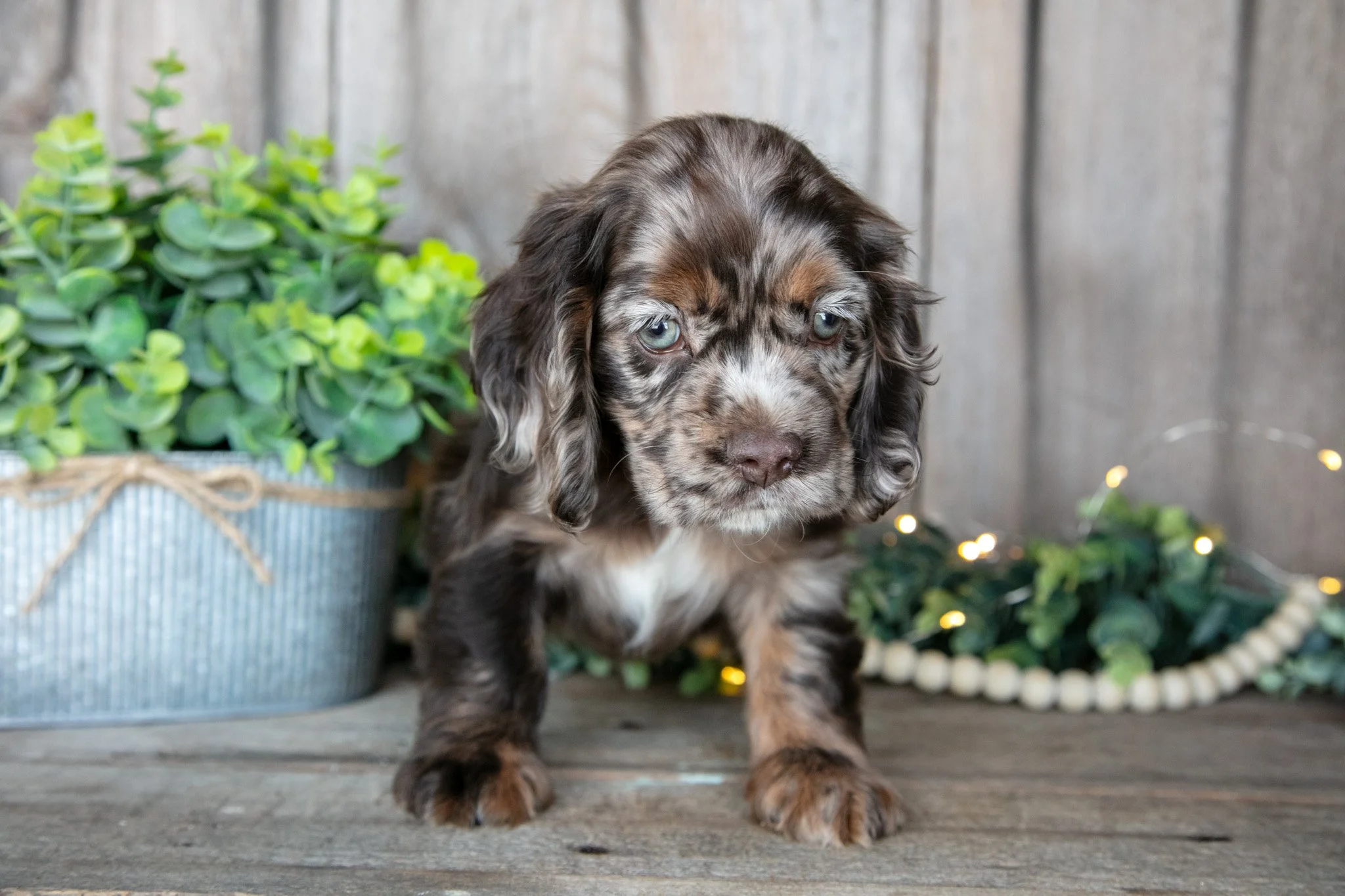Everyone meet Bandit! This adorable Cocker Spaniel puppy is ready to cuddle and play with you! This puppy is family raised with children and loves to snuggle up and give kisses. These puppies will be vet checked, microchipped, up to date on vaccinations and wormer, and AKC registered! To learn more about these adorable puppies, please contact us today!