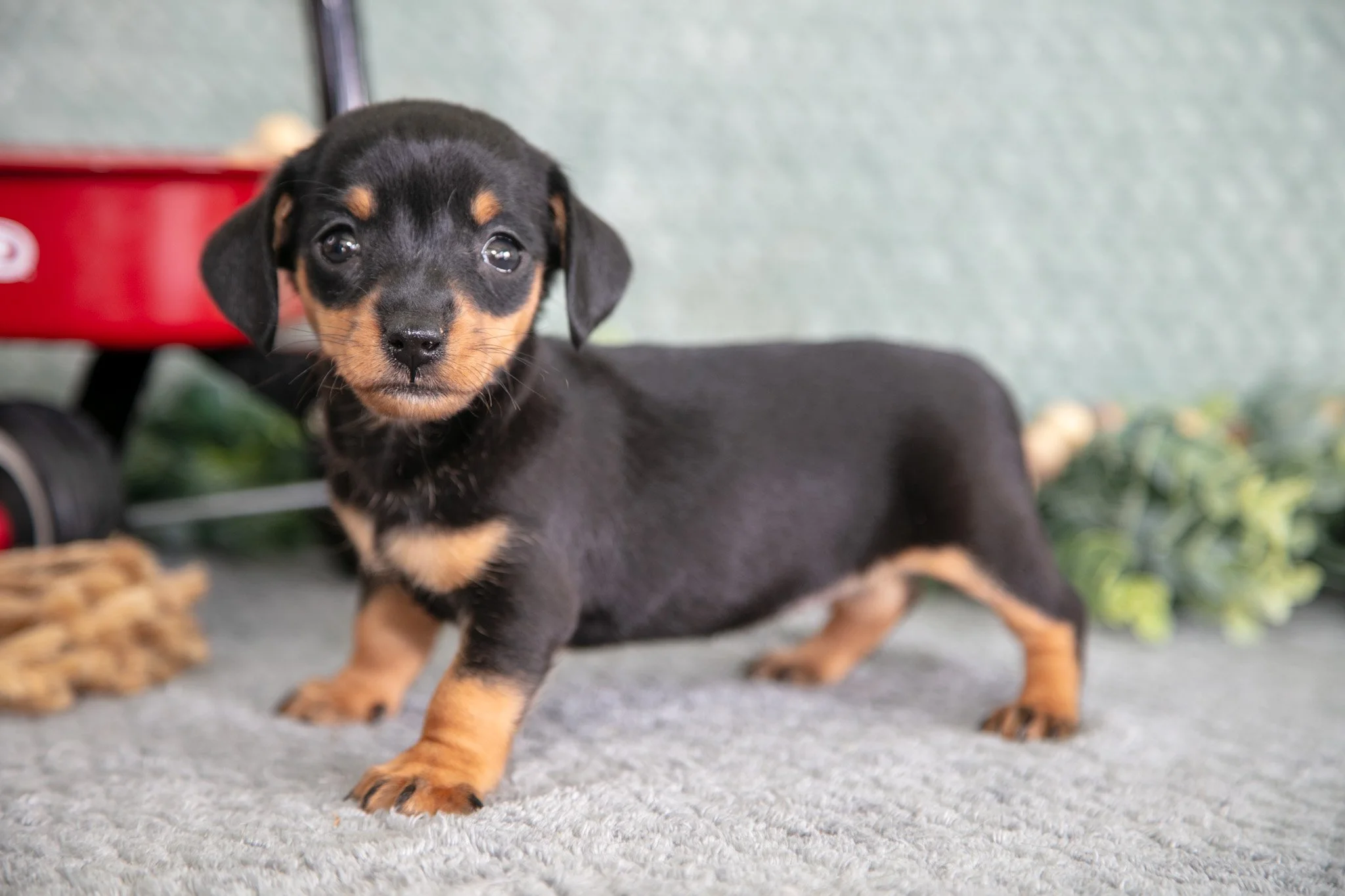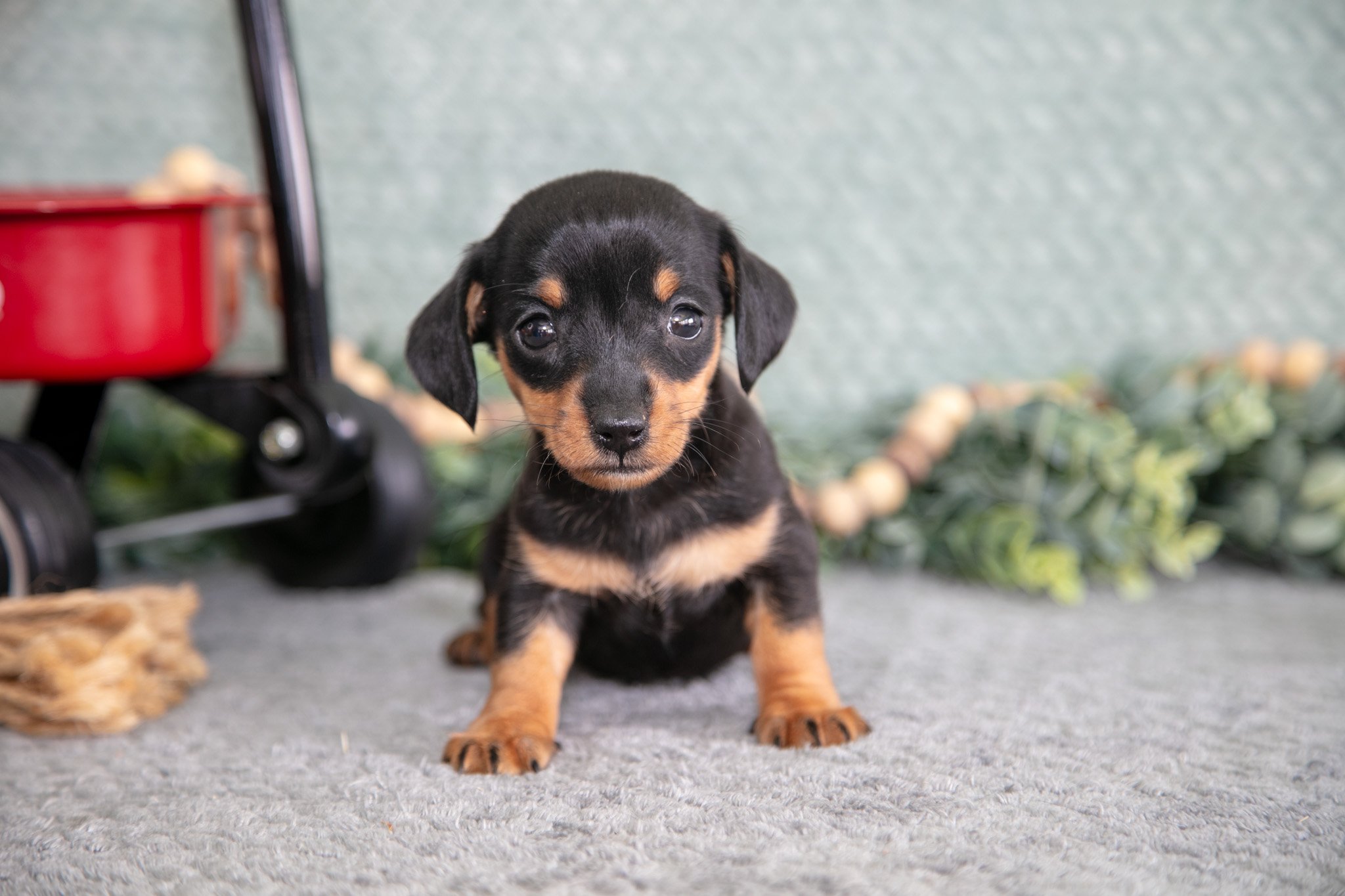 Here comes Barbie! This gorgeous Dachshund puppy is full of love, ready to play, and loves to adventure. She is family raised with kids and loves to be the center of attention. She will be sure to be a great cuddle partner! She will be vet checked, up to date on shots and wormer and registrable to the ACA! To learn more about this stunning puppy, please contact us today!
