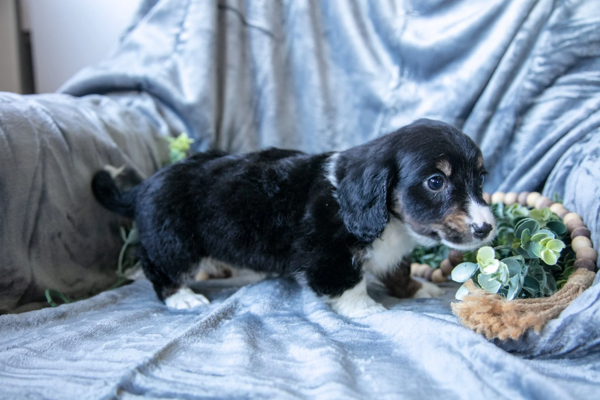 Say hello to Duke! This unique Dachshund/Husky mix puppy is full of love, ready to play, and loves to adventure. He is family raised with kids and loves to be the center of attention. He will be vet checked and up to date on shots and wormer! To learn more about this stunning puppy, please contact us today!