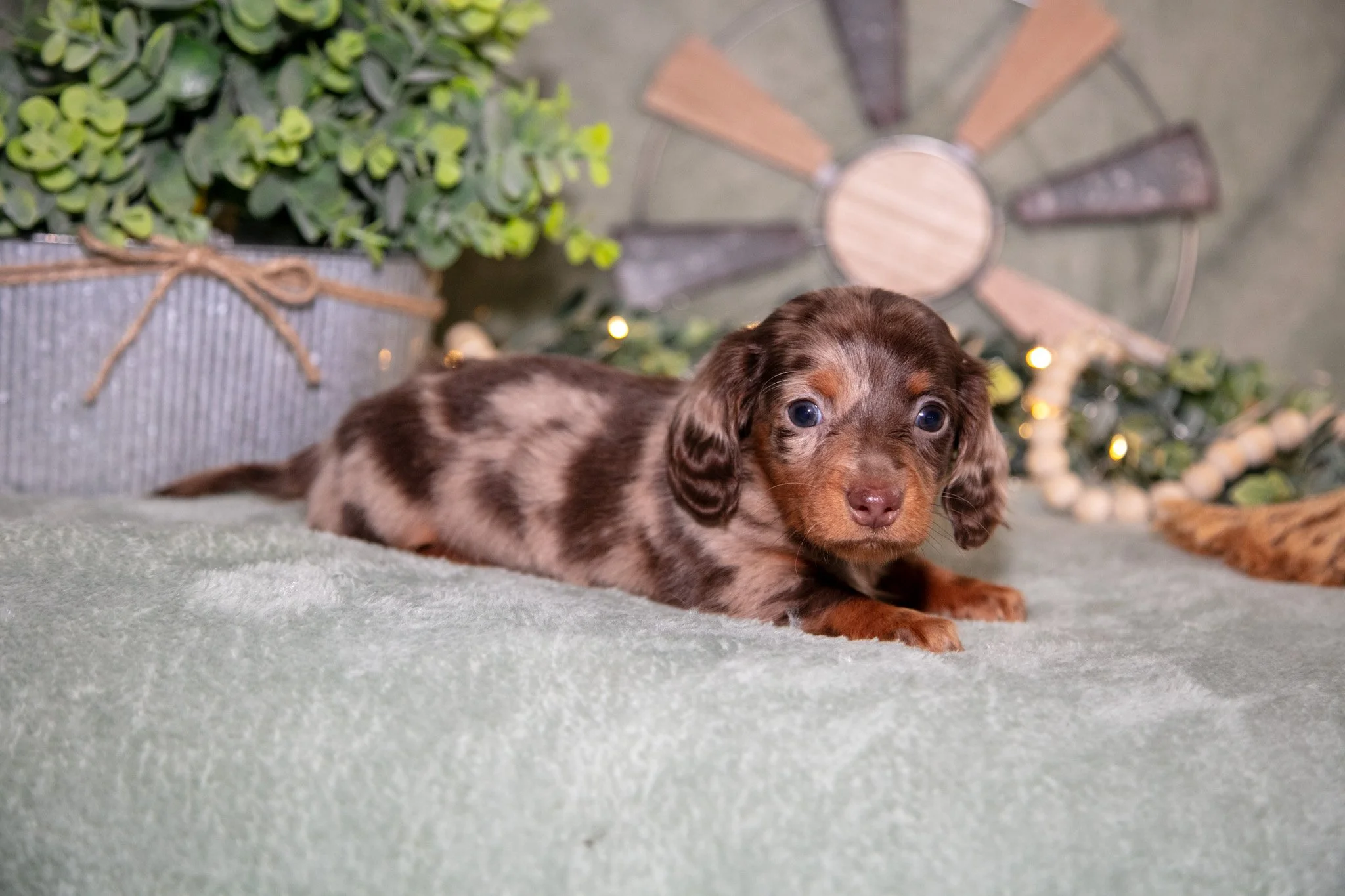 Sire - (Long Haired Piebald Dapple Mini Dachshund 10lbs)