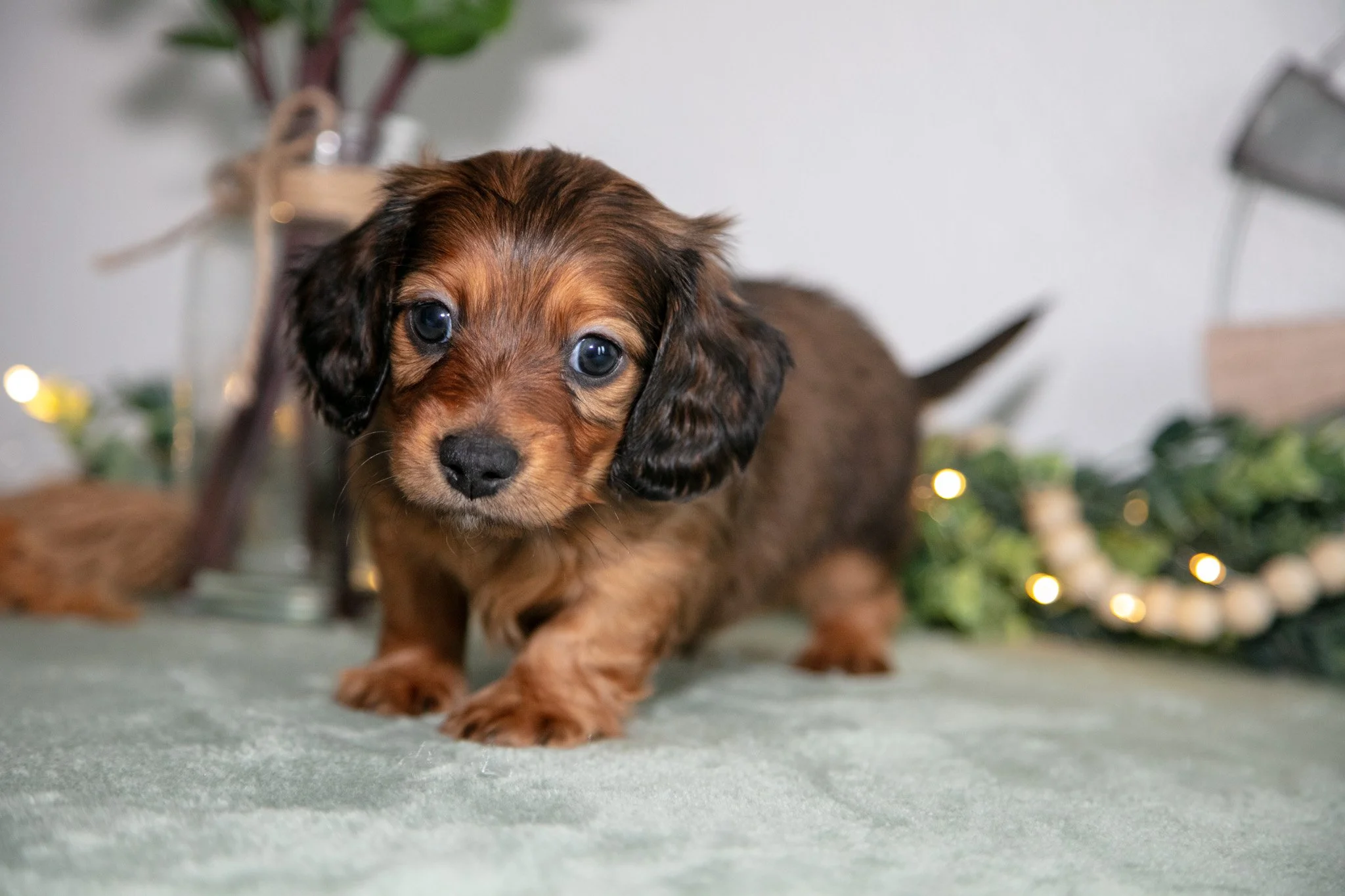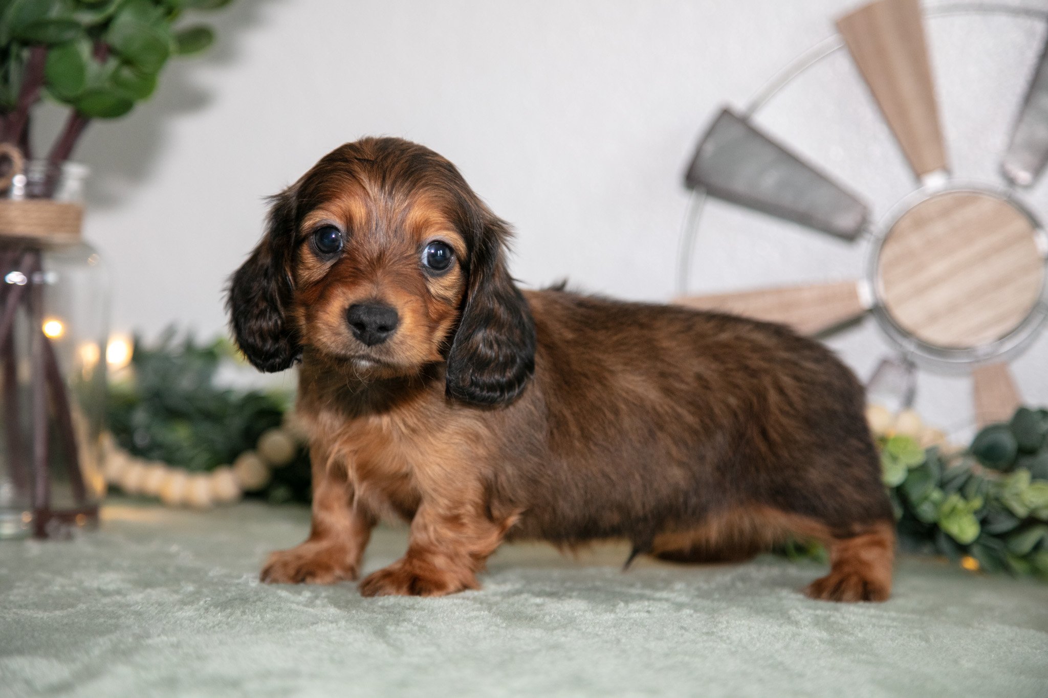Here comes Howie! This gorgeous Dachshund puppy is full of love, ready to play, and loves to adventure. He is family raised with kids and loves to be the center of attention. These puppies will be vet checked, up to date on shots and wormer and registered to the AKC! To learn more about these adorable puppies, please contact us today!