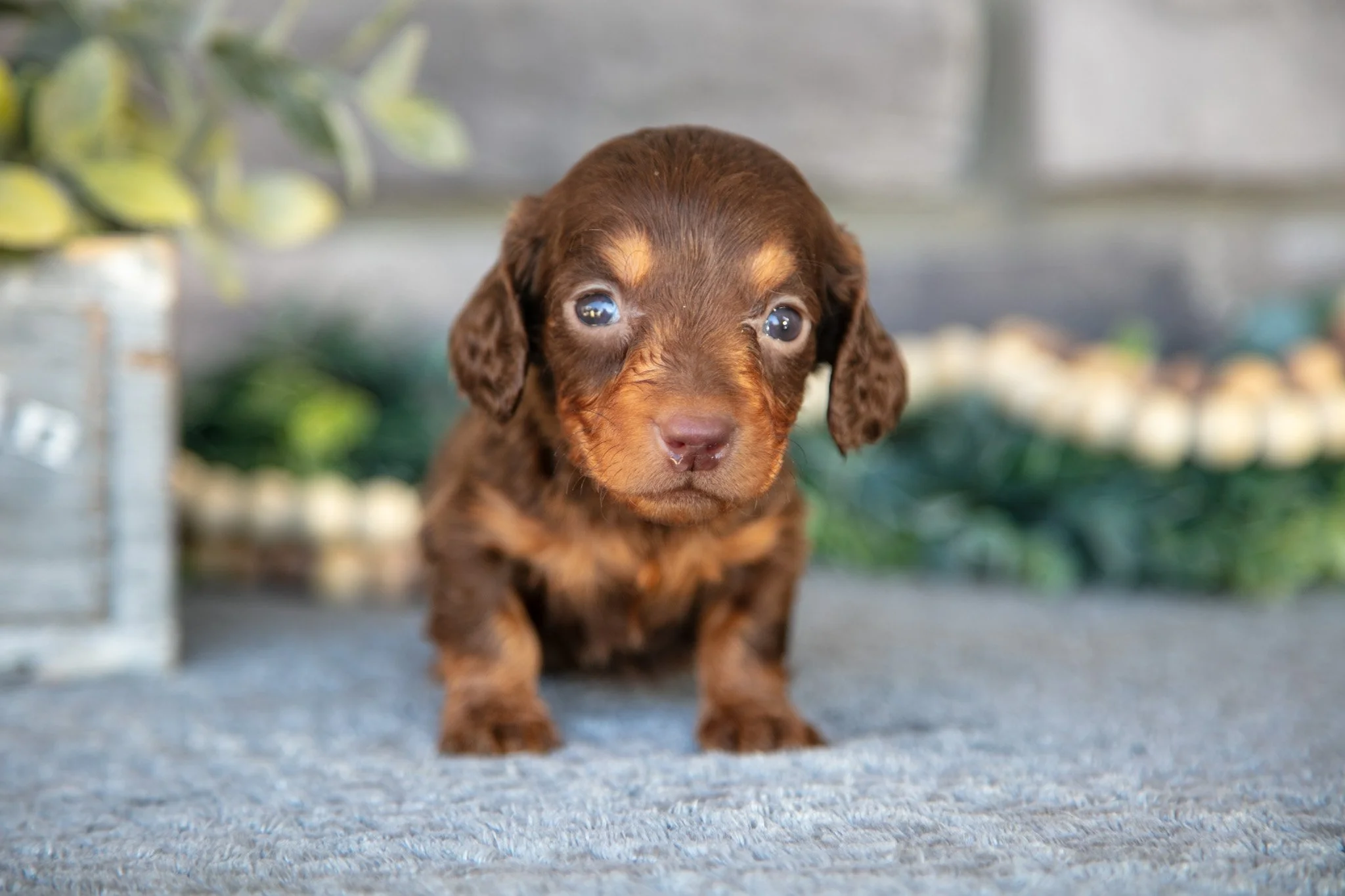Say hello to Tucker! This adorable Mini Dachshund puppy is ready to spoil you with love and attention. This charming puppy is family raised and will be sure to keep you on your toes. These pups will be vet checked, microchipped, registered with the AKC, and up to date on shots and wormer! To welcome this perfect pooch into your home, please contact us today!