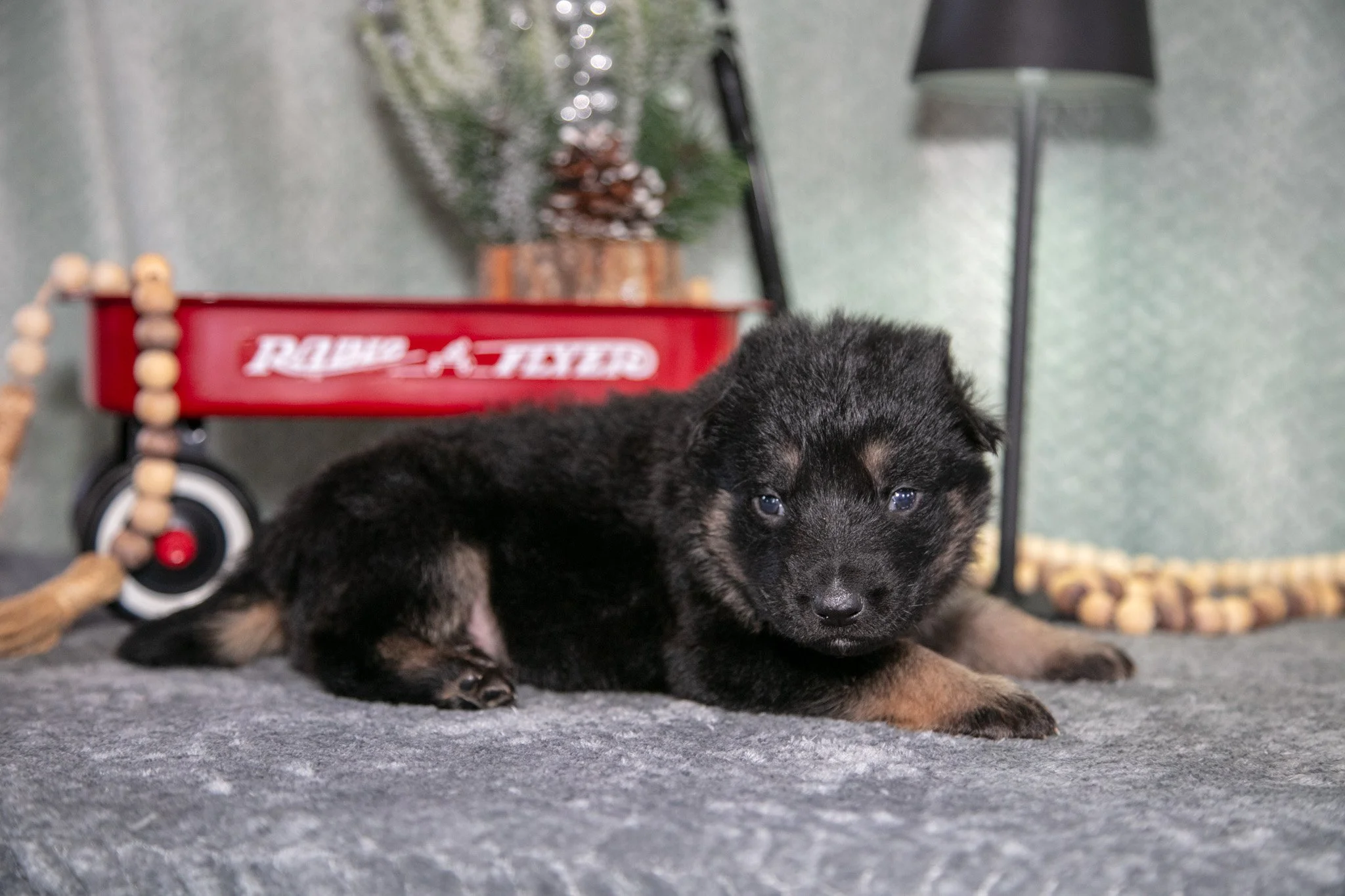 Here comes Landon! This adorable German Shepherd puppy is filled to the brim with love and kisses. He loves to play and adventure. He is family raised with children and loves to be snuggled. They will be vet checked and up to date on shots and wormer! To learn more about these beautiful pups, please contact us today!