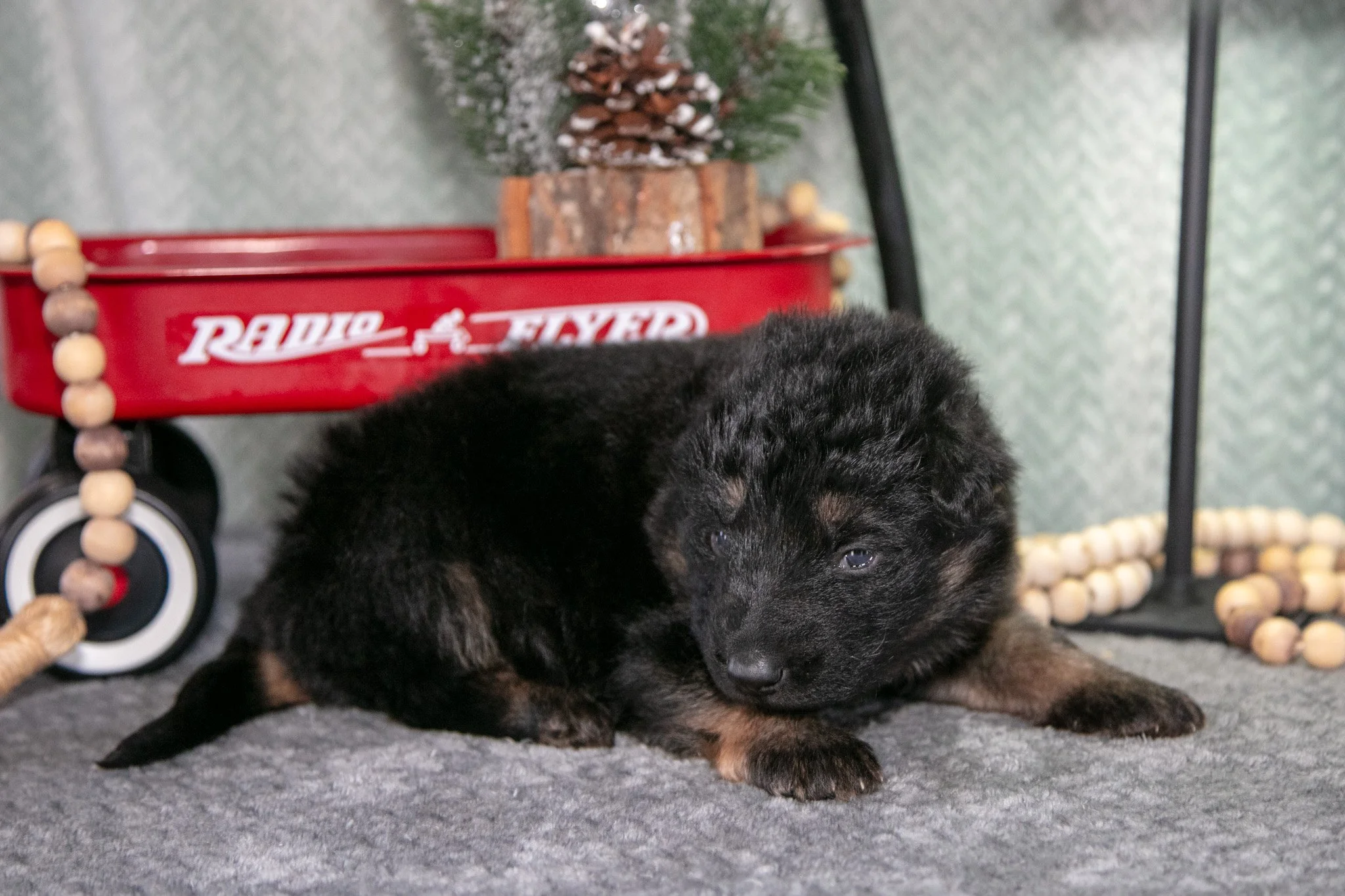 Here comes Liam! This adorable German Shepherd puppy is filled to the brim with love and kisses. He loves to play and adventure. He is family raised with children and loves to be snuggled. They will be vet checked and up to date on shots and wormer! To learn more about these beautiful pups, please contact us today!