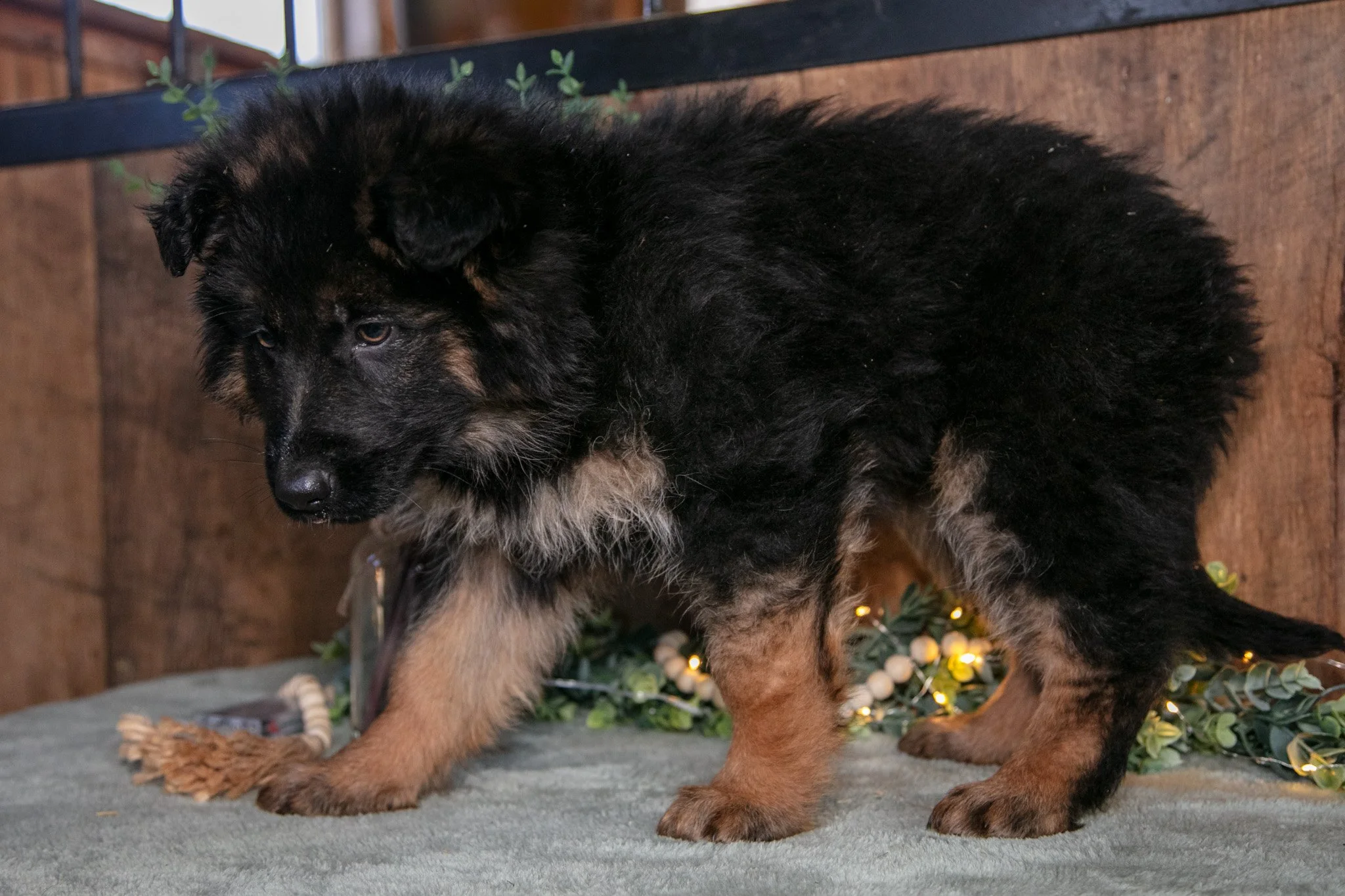 Say hello to Noel! This adorable German Shepherd puppy is filled to the brim with love and kisses. She loves to play and adventure. She is family raised with children and loves to be outside. They are AKC registered, vet checked, and up to date on shots and wormer. To learn more about these beautiful pups, please contact us today!