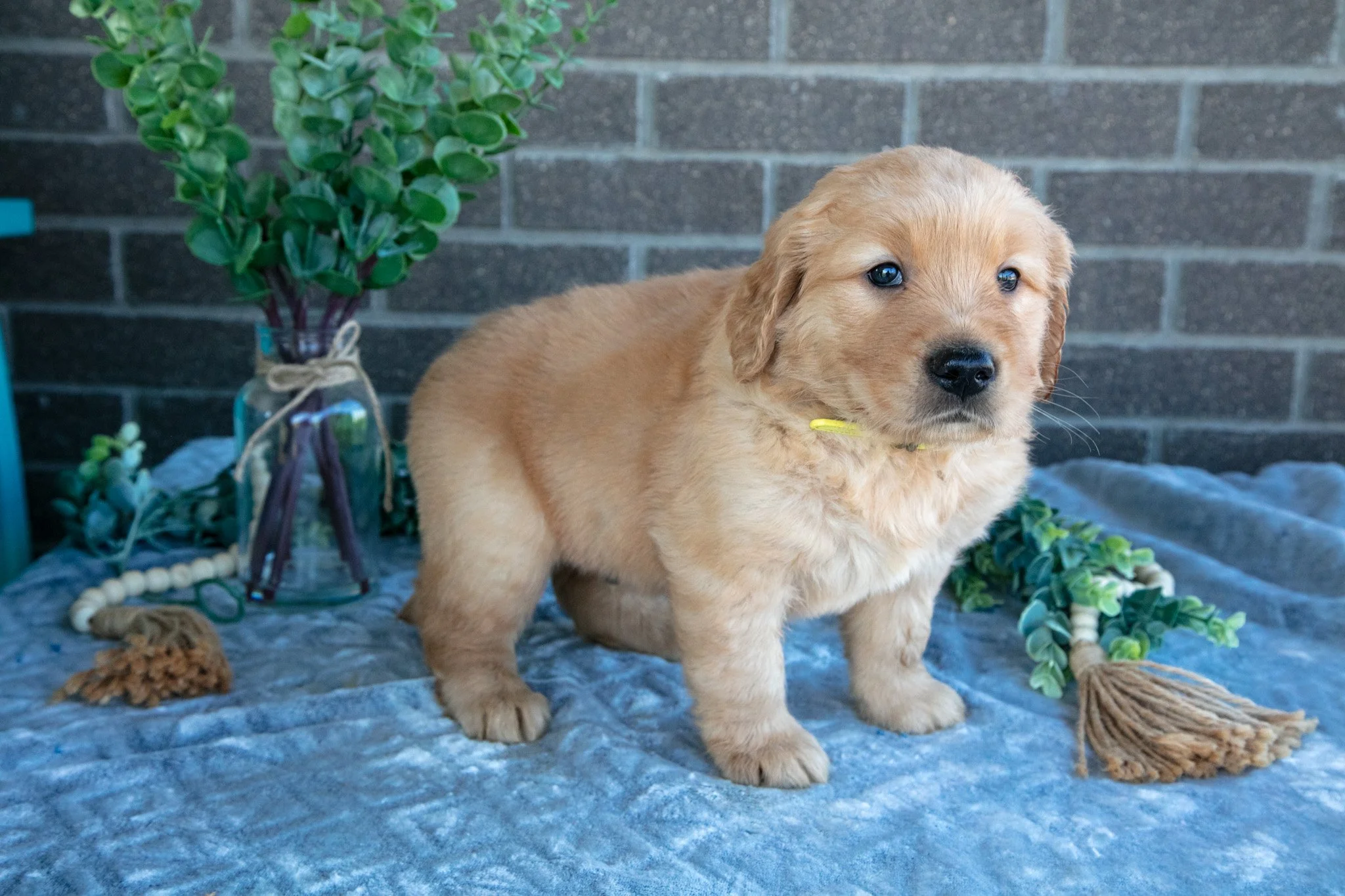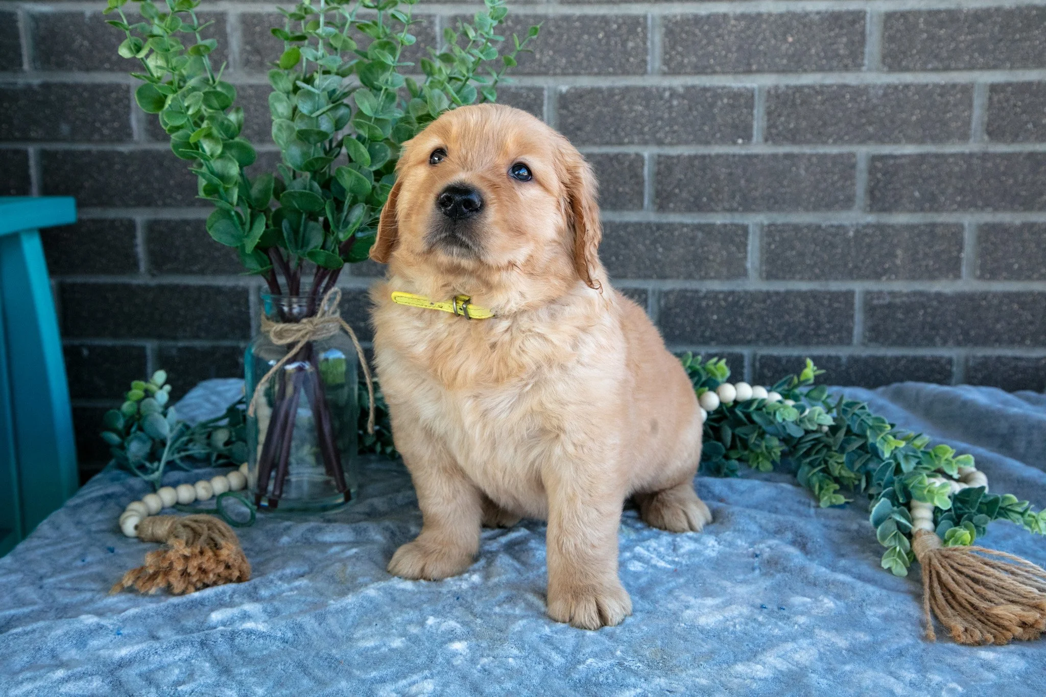 Everyone meet Pierce! This gorgeous, fluffy Golden Retriever puppy is ready to spoil you with love and would love to play! These puppies are family raised with children and love to be the center of attention. They will be vet checked and up to date on shots and wormer and are ACA registerable! To learn more about this adorable puppy, please contact us today.