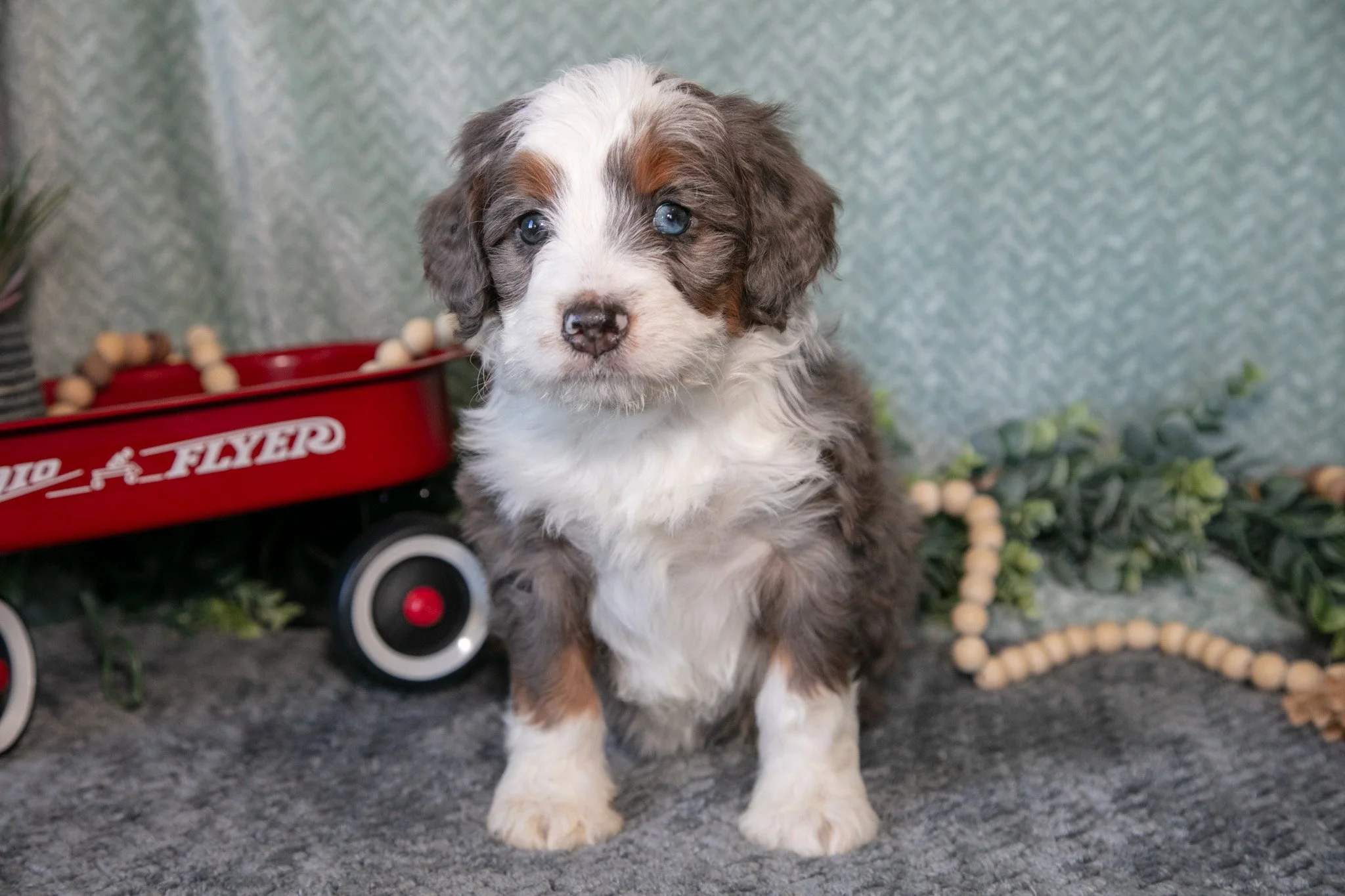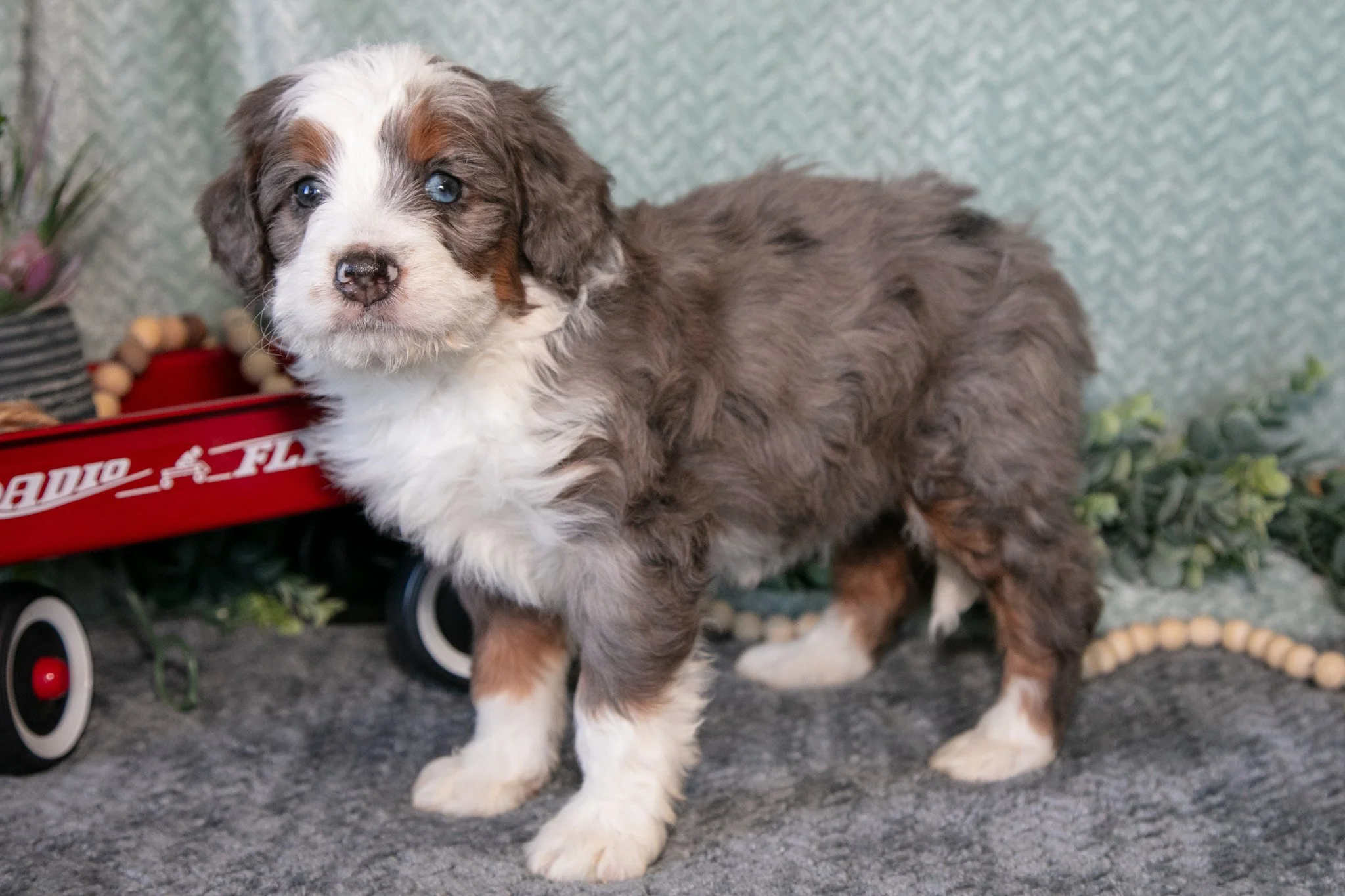 Here comes Mia! This gorgeous Mini Bernedoodle puppy is ready to adventure with you! She is full of love and affection and would make a wonderful addition to any family. These puppies will be vet checked, up to date on all shots and wormer and microchipped! For more information about these adorable puppies, please contact us today!
