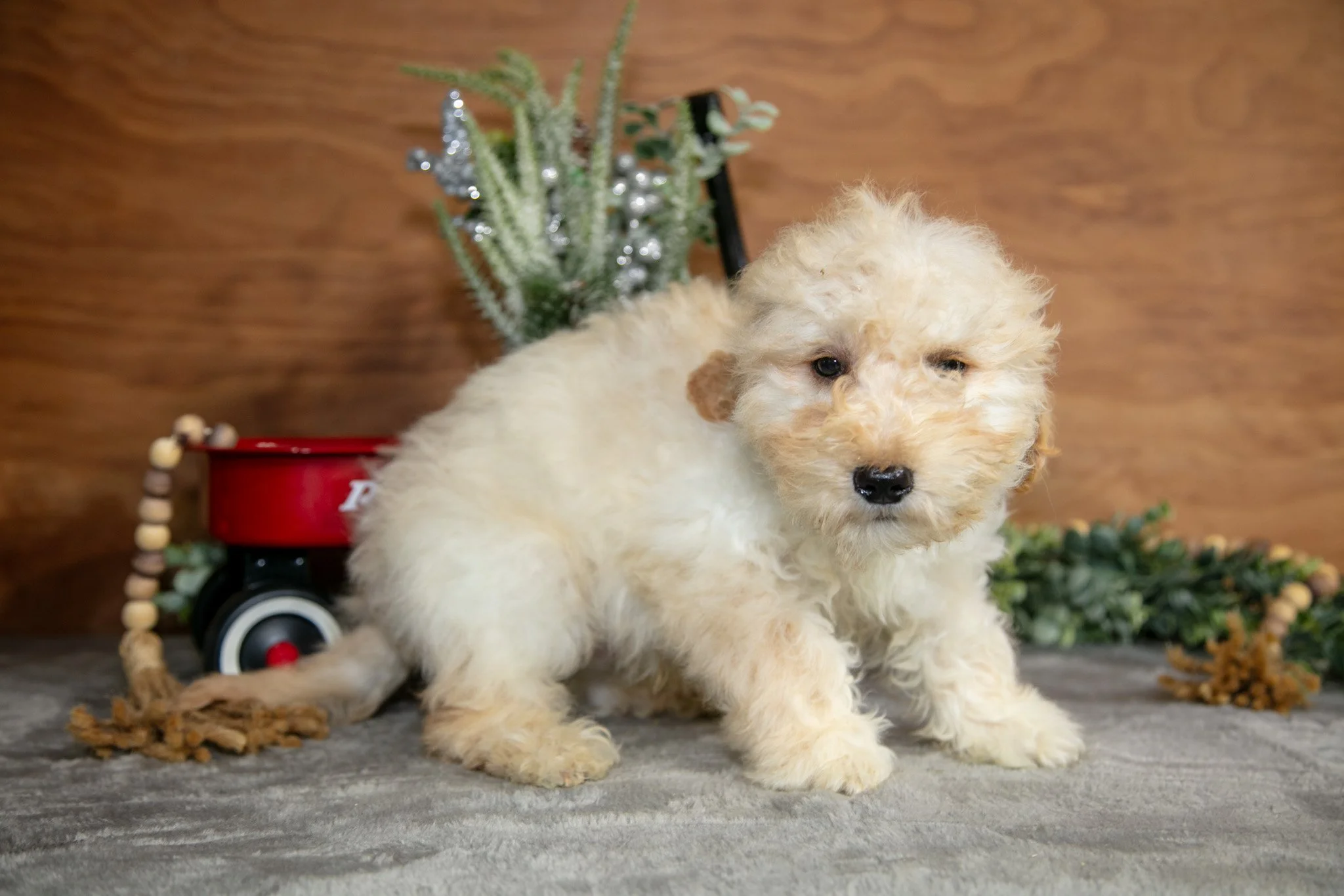 Here comes Harrison! This adorable Mini Goldendoodle puppy loves to play and would love to snuggle up with you! He is family raised and will make a wonderful addition to any family. They will be vet checked and up to date on shots/wormer. They also come with a health guarantee provided by the breeder! To learn more about this curly cutie, please contact us today!
