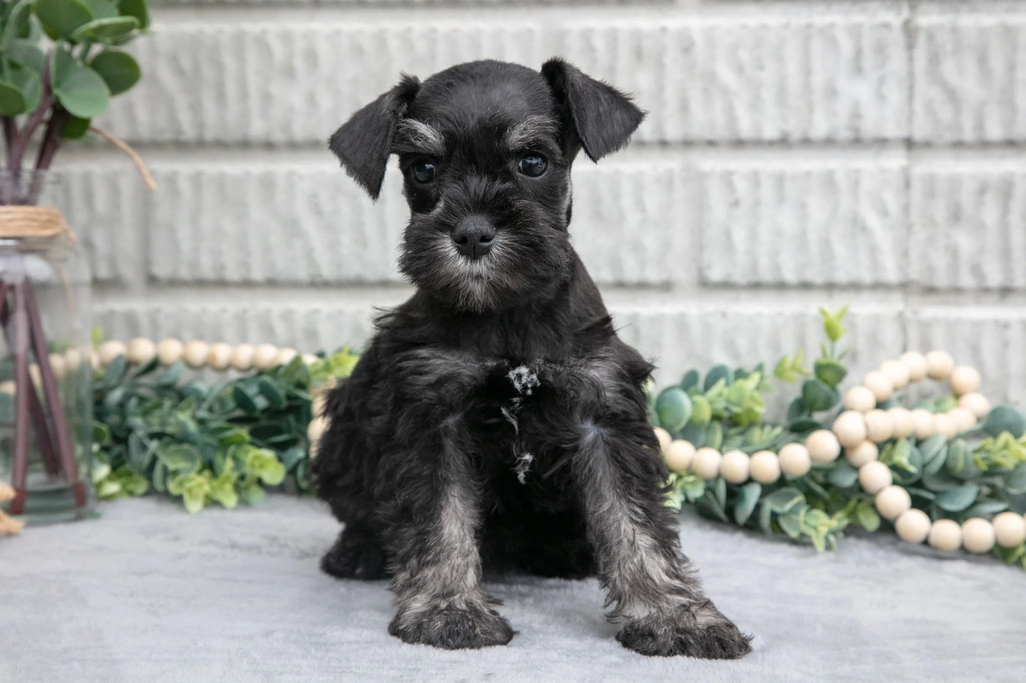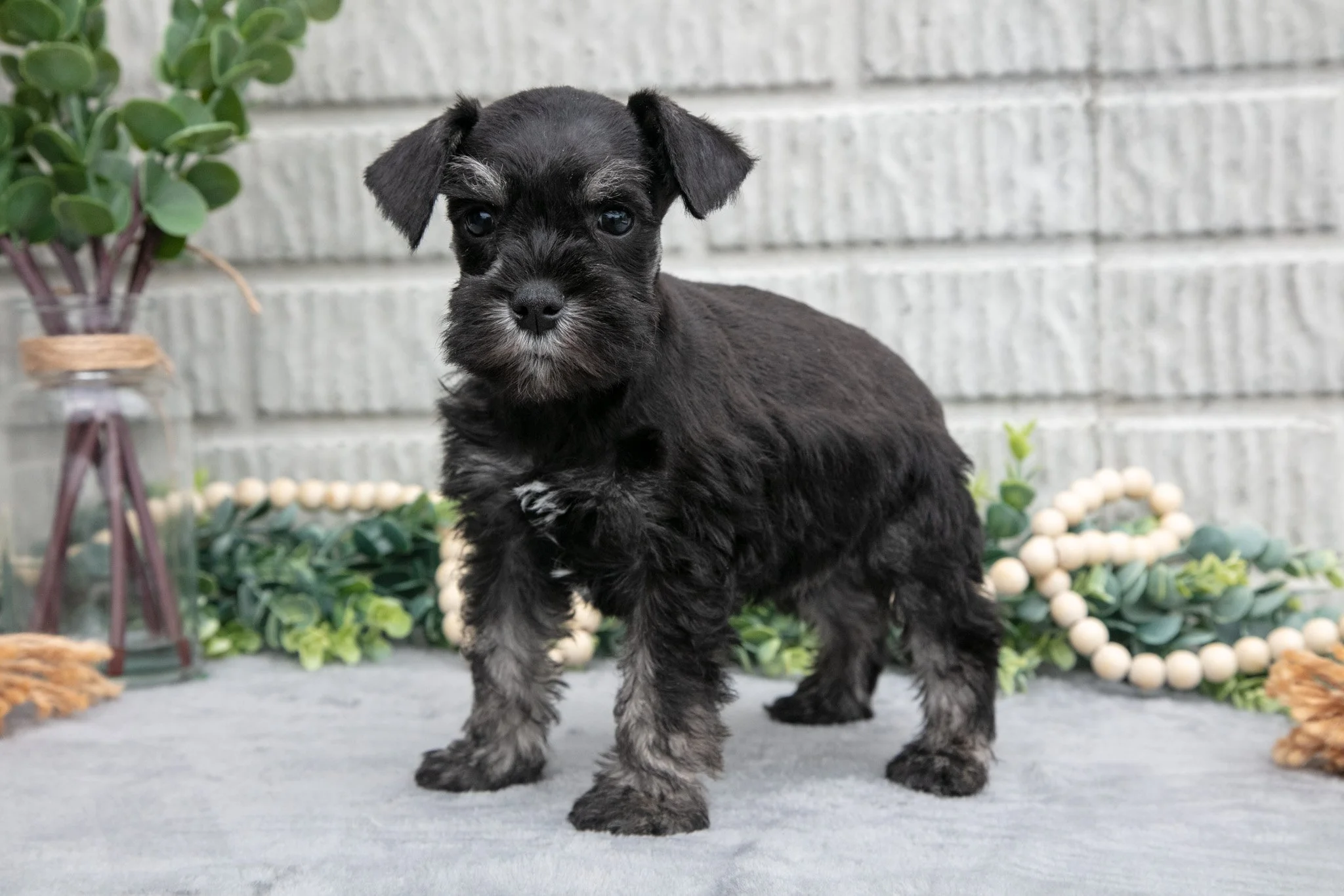 Here comes Fern! This adorable Mini Schnauzer puppy is filled to the brim with love and will be sure to make a wonderful companion. She is very playful and would love to adventure with you! These adorable pups are family raised and will fit in well with any family. They will be vet checked, microchipped, up to date on shots and wormer, registered with the AKC, and come with a one year genetic health guarantee provided by the breeder. To learn more about these sweet puppies, please contact us today!