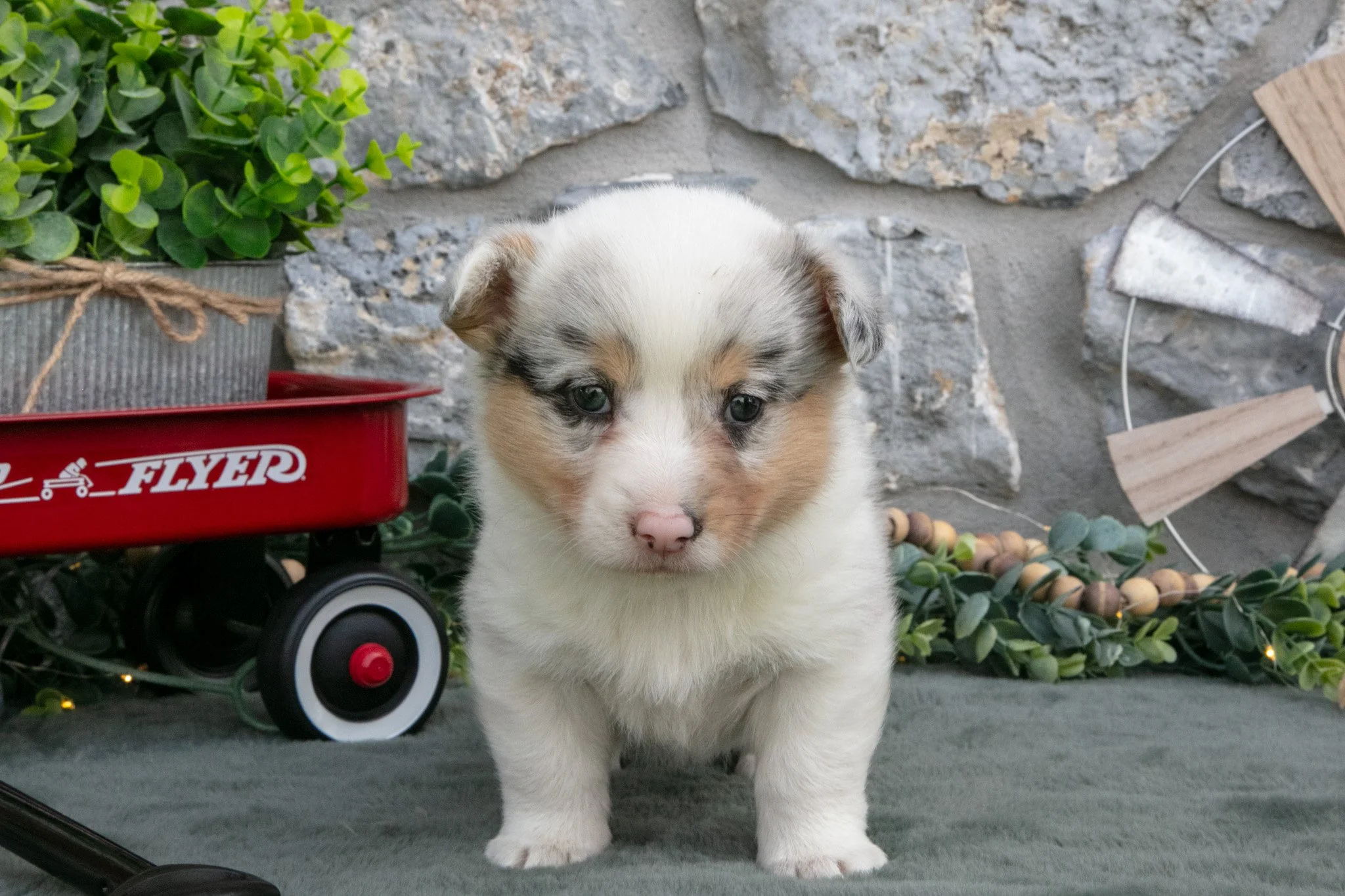 Here comes Indy! This gorgeous Pembroke Welsh Corgi puppy is ready to play and loves to be the center of attention. She is full of life and loves to cuddle! These charmers are family raised with kids and will fit in great with any family. She will be vet checked, up to date on shots and wormer, and ACA registered! To learn more about sweet Indy, please contact us today!