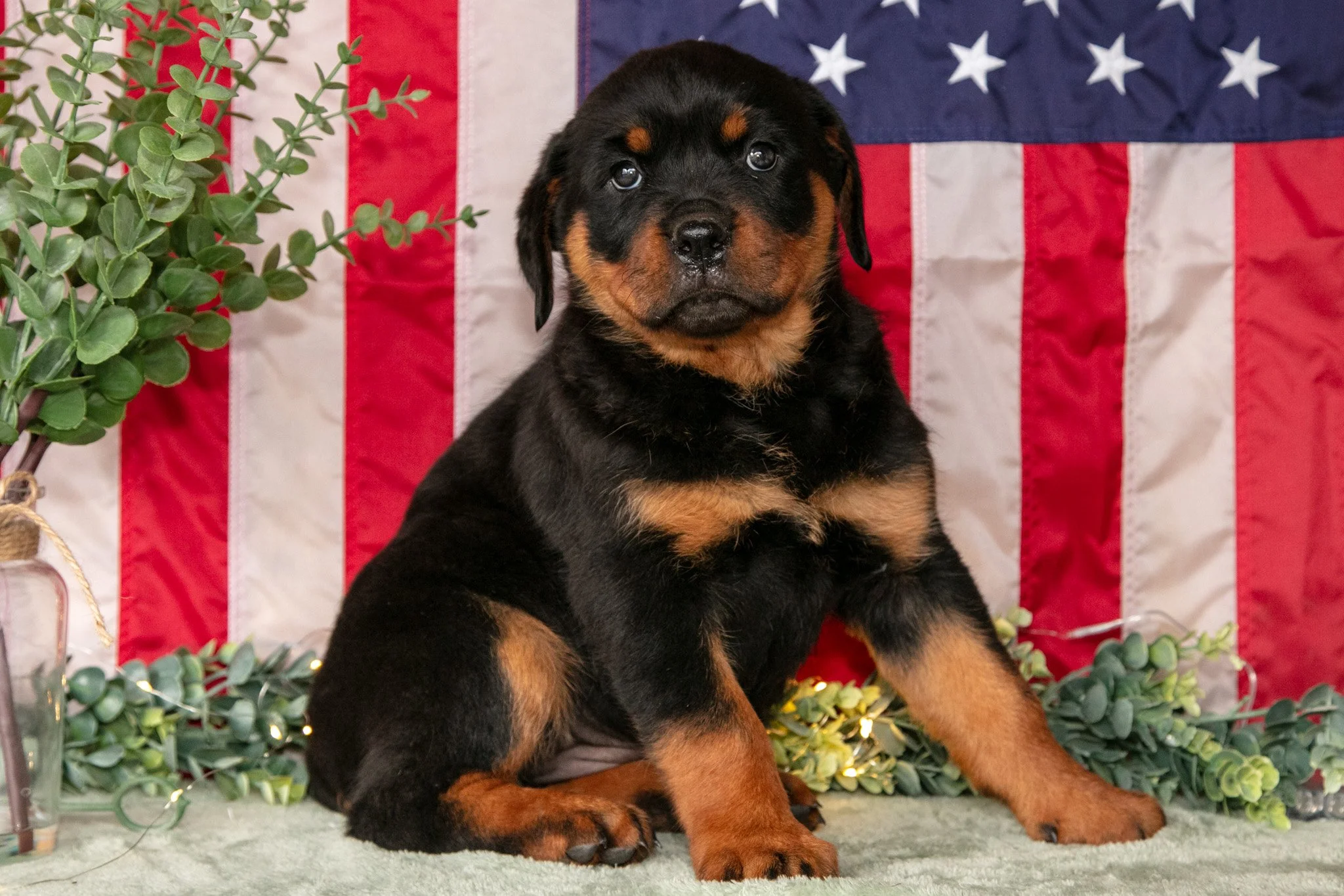 Say hello to Lily! This adorable Rottweiler puppy is one of a kind and is ready to snuggle with you! She is family raised and loves to be the center of attention. She will be vet checked and up to date on shots and wormer To learn more about this adorable puppy, please contact us today!