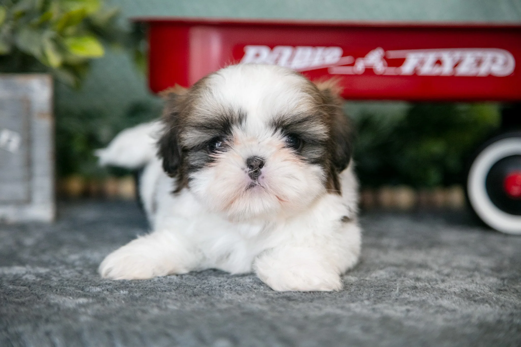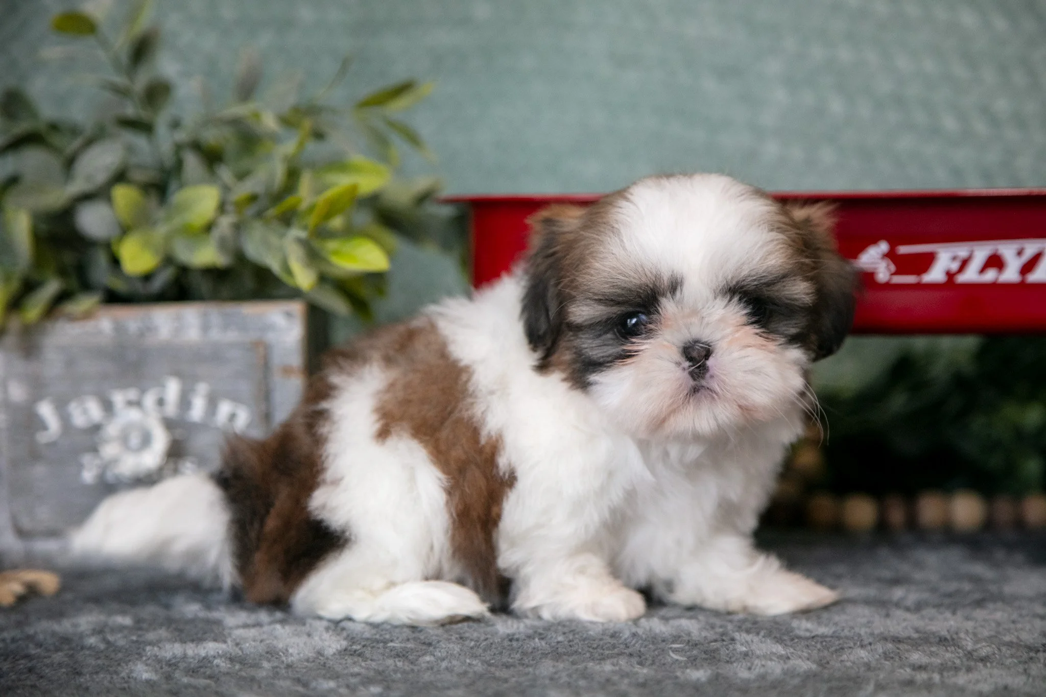 Here comes Pipsqueak! This sweet, lovable Shih Tzu puppy would be sure to add new love and life into your home! She is family raised and will always be at your side. She will be up to date on shots and wormer. She also comes with the peace of mind of a two week health guarantee provided by the breeder. To welcome this adorable puppy into your home, please contact us today!