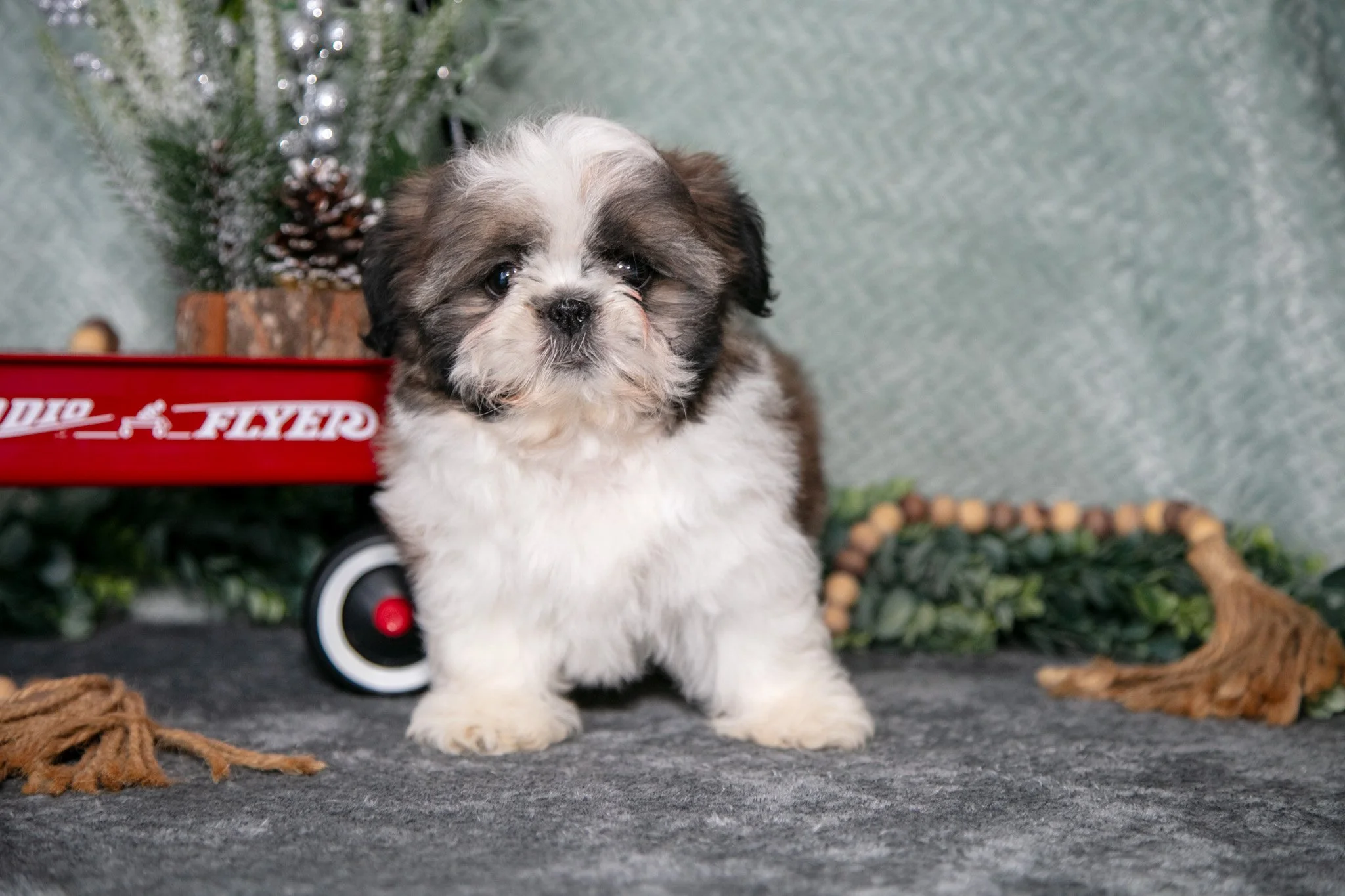 Here comes Violet! This sweet, lovable Shih Tzu puppy would be sure to add new love and life into your home! She is family raised and will always be at your side. She will be up to date on shots and wormer. She also comes with the peace of mind of a two week health guarantee provided by the breeder. To welcome this adorable puppy into your home, please contact us today!