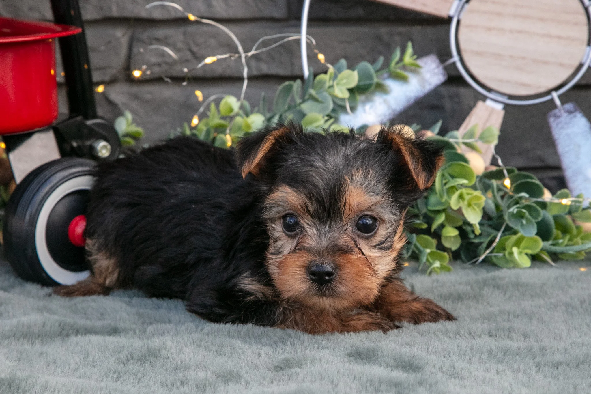 Here comes Bonnie! This adorable Yorkshire Terrier puppy loves to play and would make a wonderful addition to any home. She is family raised and always ready to adventure! She is up to date on shots and wormer. To learn more about this tiny baby, please contact us today!