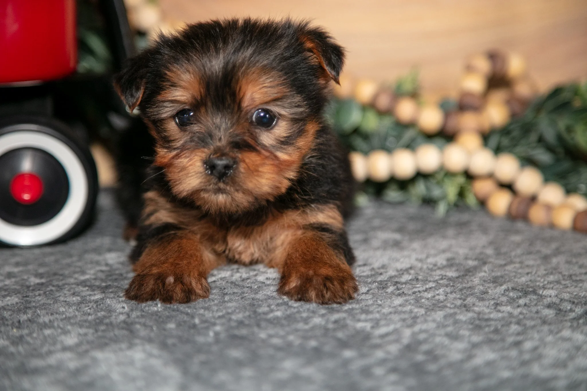 Here comes Poppy! This adorable Yorkshire Terrier puppy loves to play and would make a wonderful addition to any home. She is family raised and always ready to adventure! She is up to date on shots and wormer. To learn more about this beautiful pup, please contact us today!