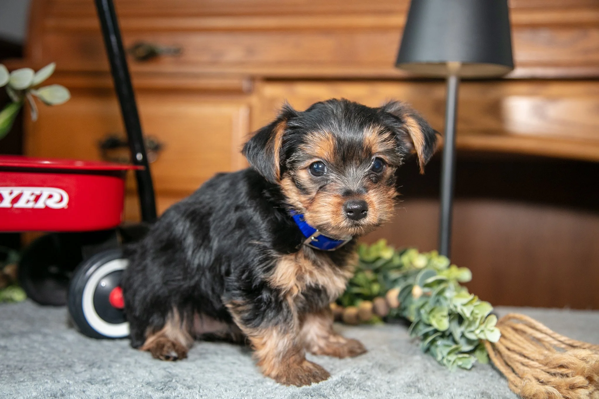 Here comes Ruby! This adorable Yorkshire Terrier puppy loves to play and would make a wonderful addition to any home. She is family raised in the house and always ready to adventure! She is also working on potty training and is doing so well! She is vet checked, up to date on shots/wormer, and AKC registered. To learn more about this beautiful pup, please contact us today!