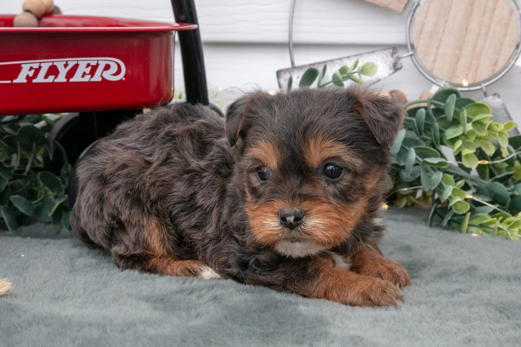 Say hello to Trina! This adorable Yorkie-poo puppy is ready to spoil you with all of her love and affection! She is super playful and will be sure to light up your life. She is vet checked upon request, and will be up to date on shots/wormer. To learn more about this adorable pup, please contact us today!